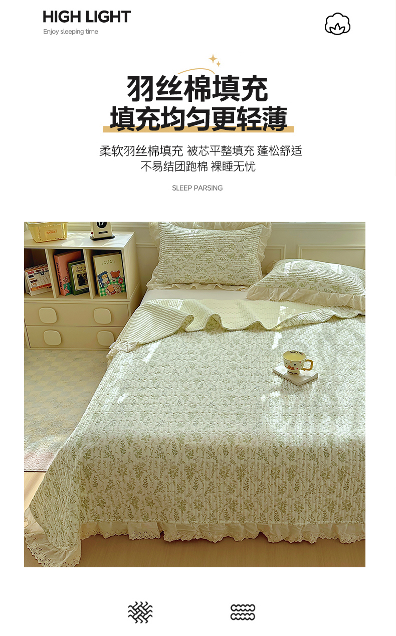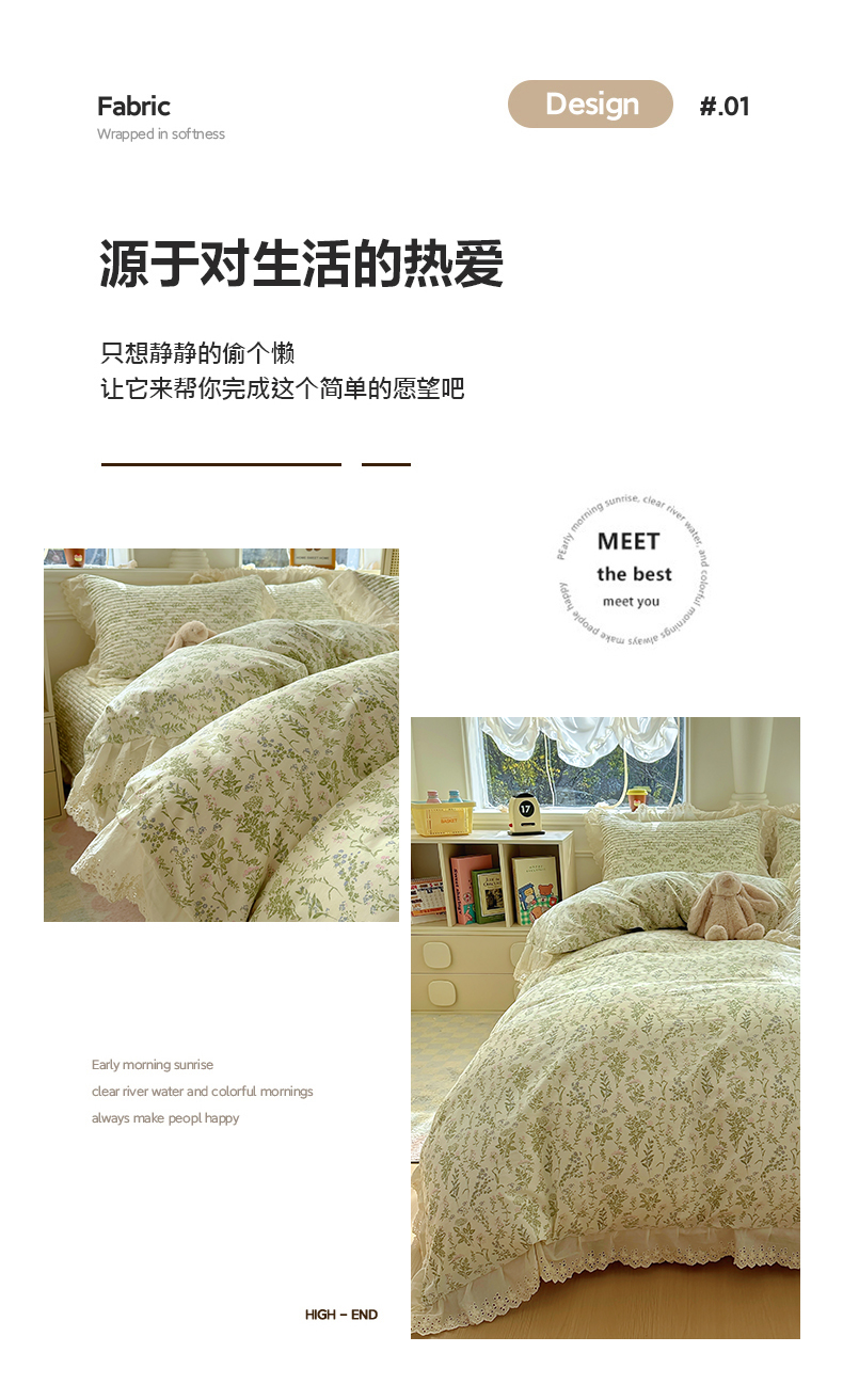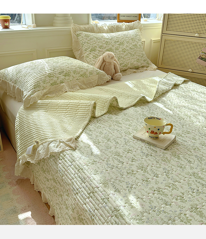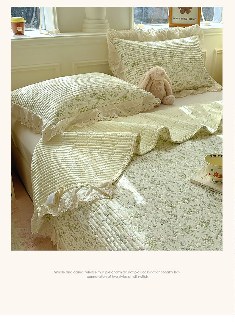 商品名称:美梦家纺 2025新款A类全棉13372花边床盖四件套-白边 白边-忘忧草