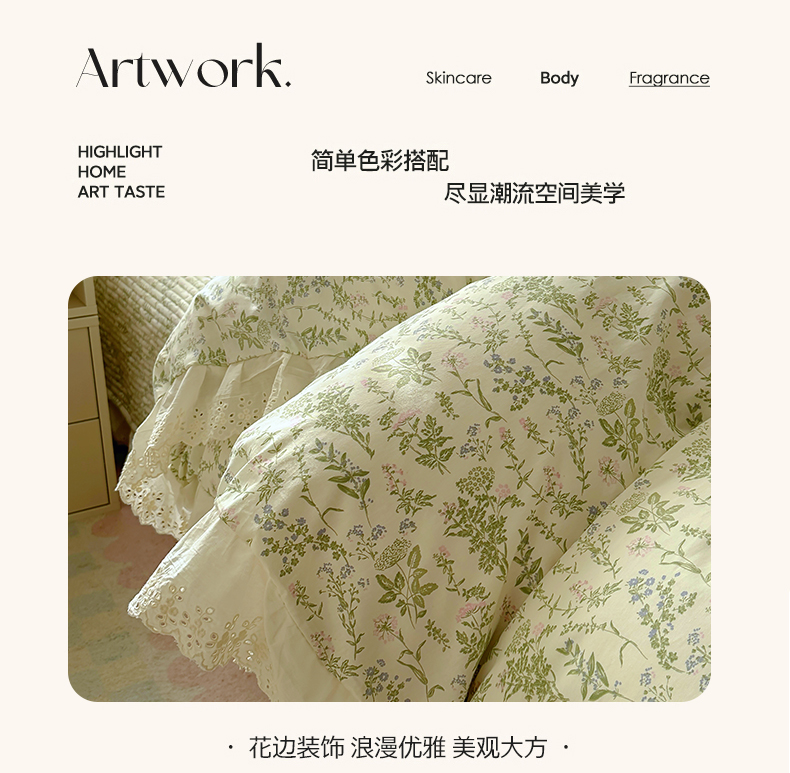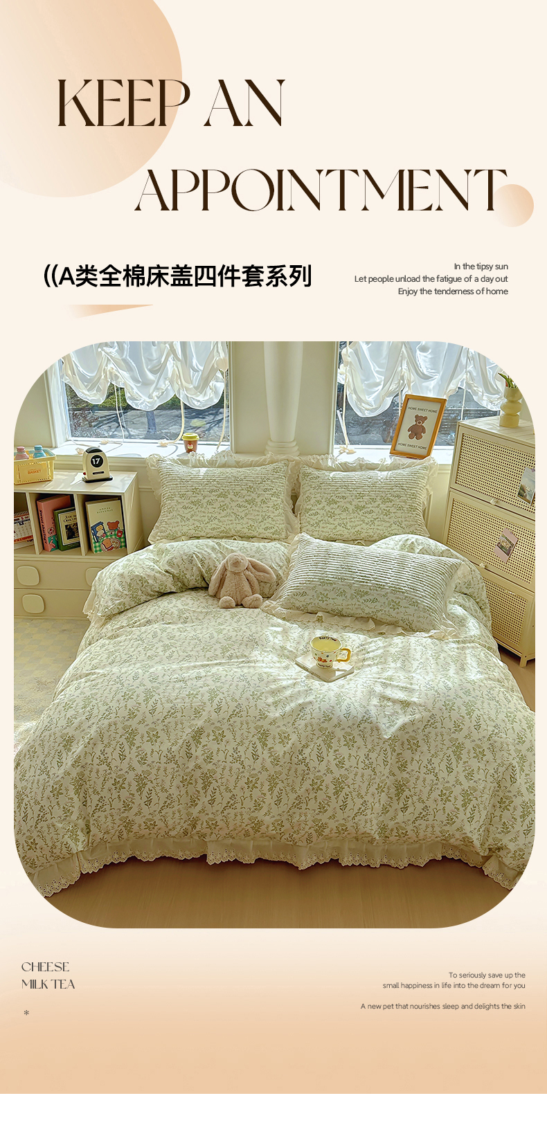 (总)美梦家纺 2026新款高克重全棉花边云感棉床盖四件套,希雅莉·米,雅格·粉,樱桃蜜·咖,尤丽叶·咖,紫藤碎花·咖,莓莓素语·粉,暖小象·兰,浅叶·米,希雅莉·灰
