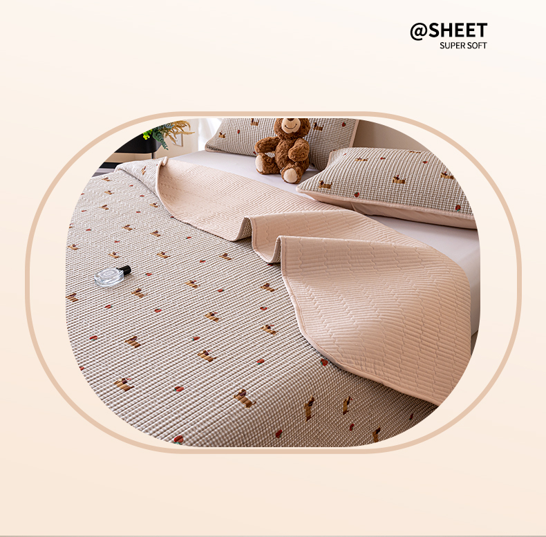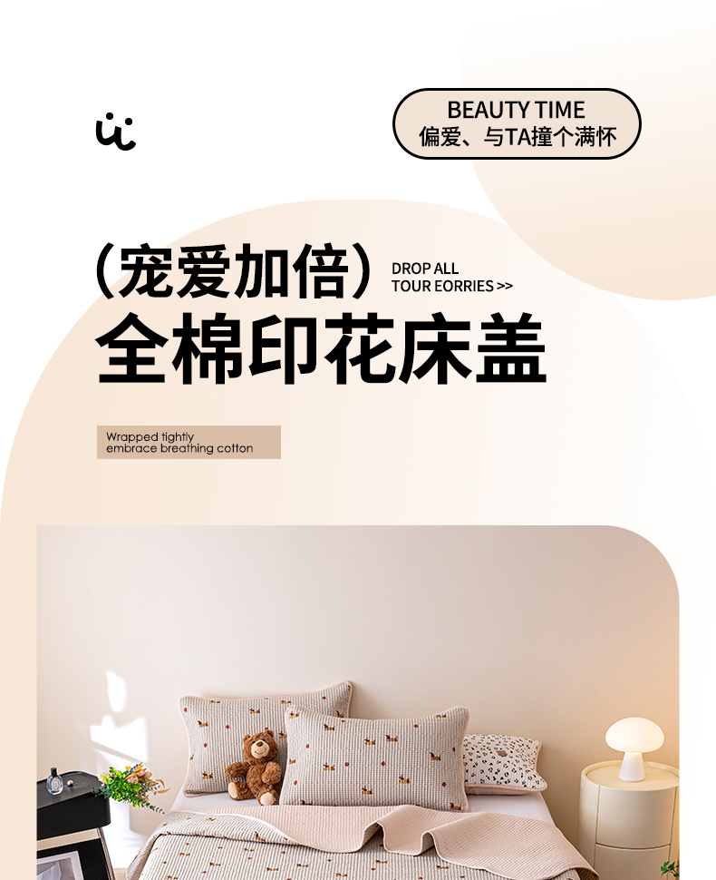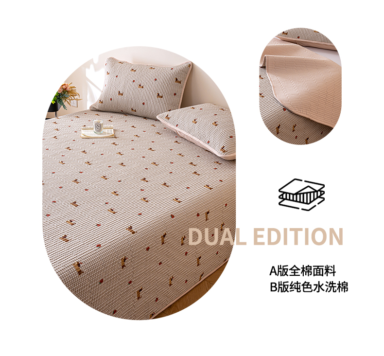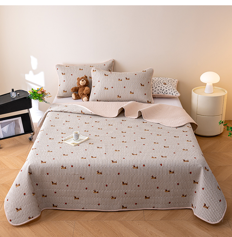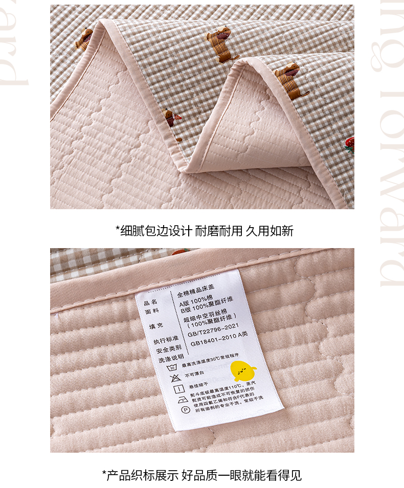 • 91家纺网 家纺一手货源 找家纺 X猫先生 2025新款全棉床盖小清新夹棉水洗炕盖床盖套件-跑量款 快乐追梦