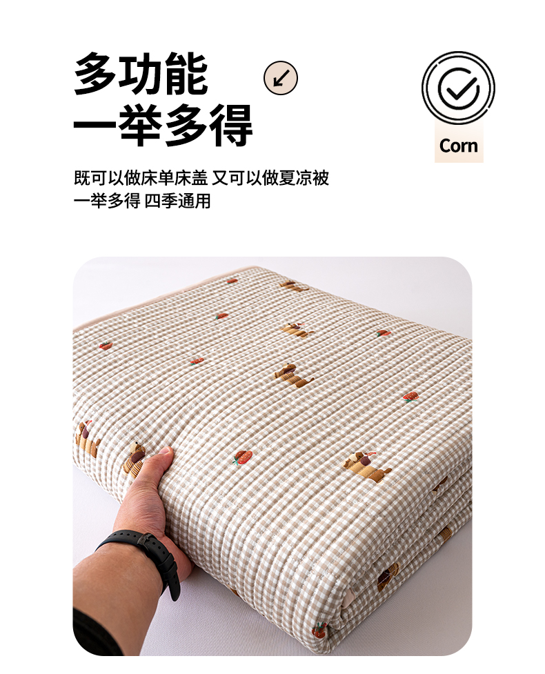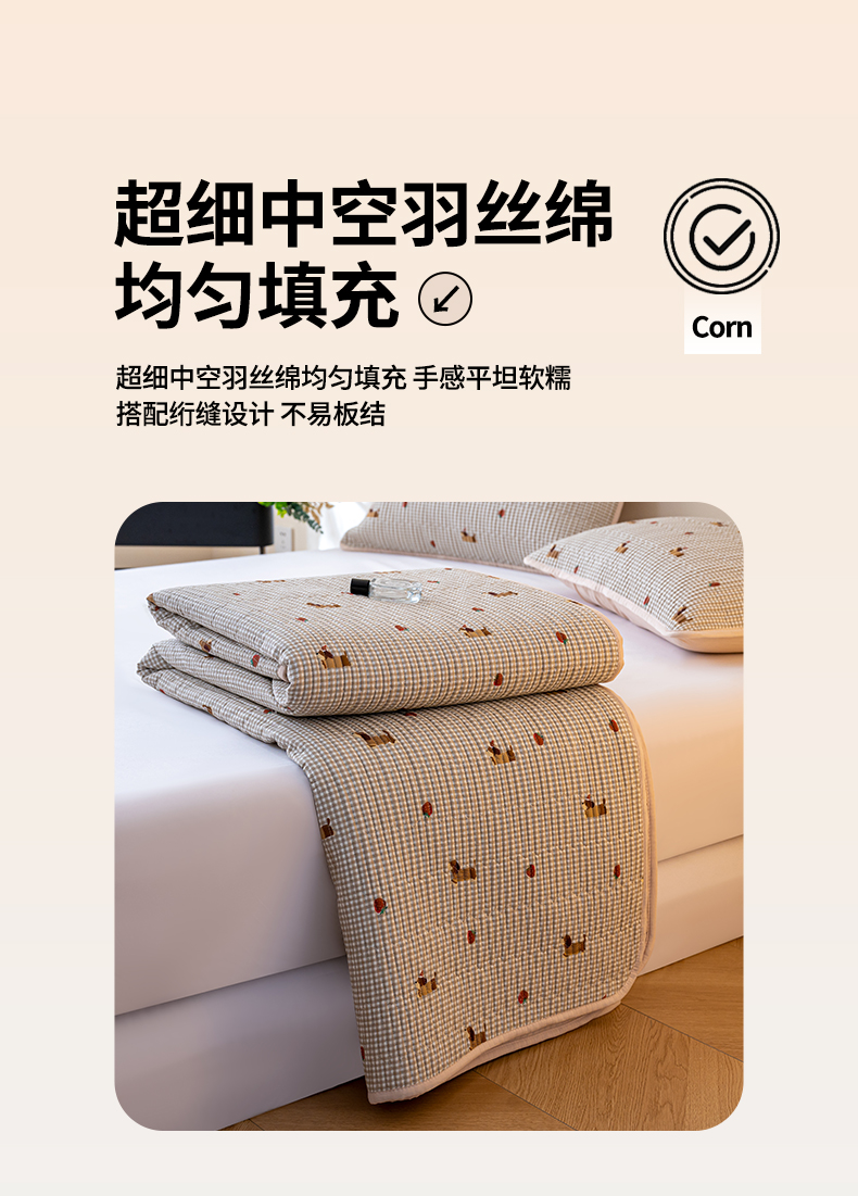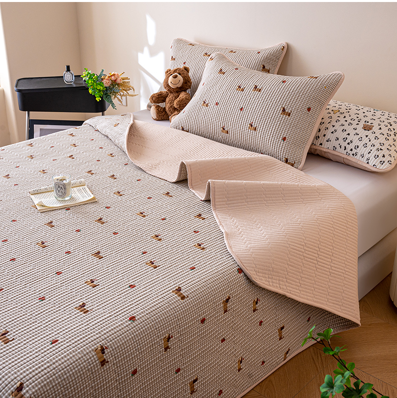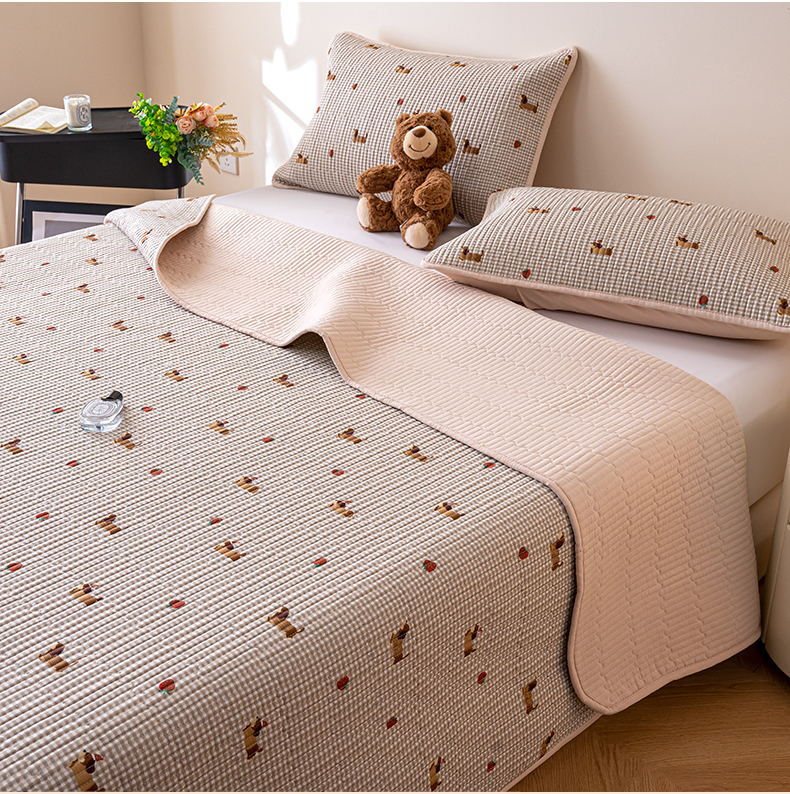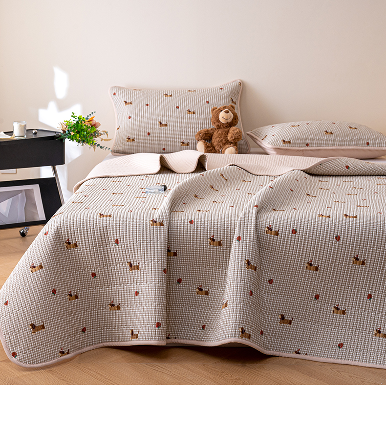 X猫先生 2025新款全棉床盖小清新夹棉水洗炕盖床盖套件-跑量款 快乐追梦