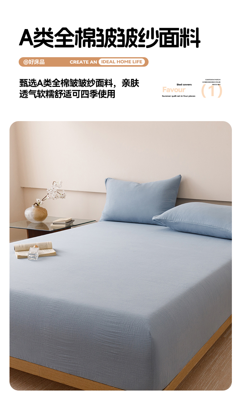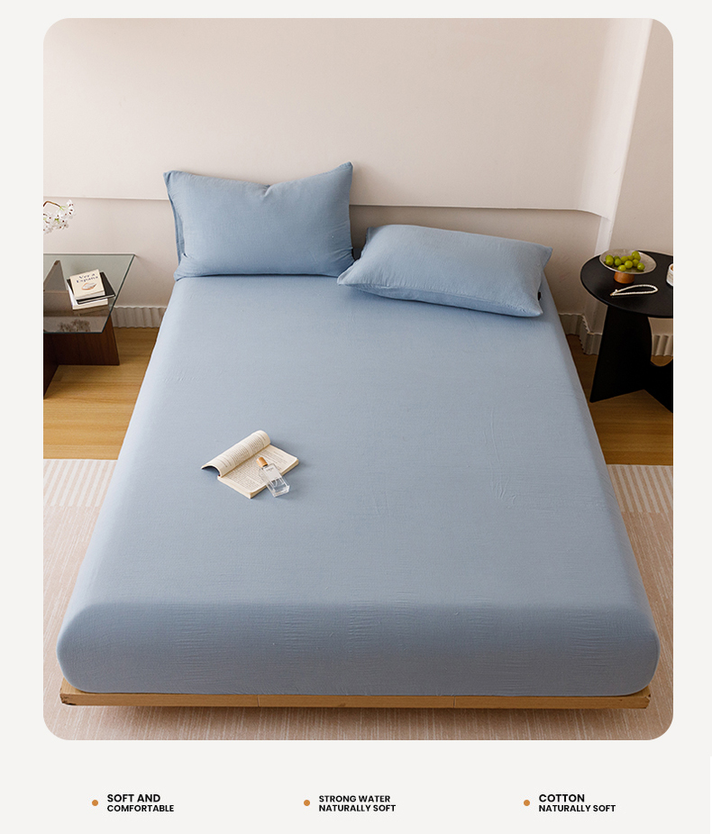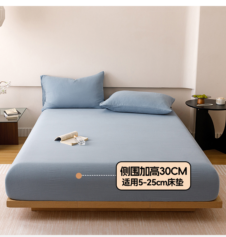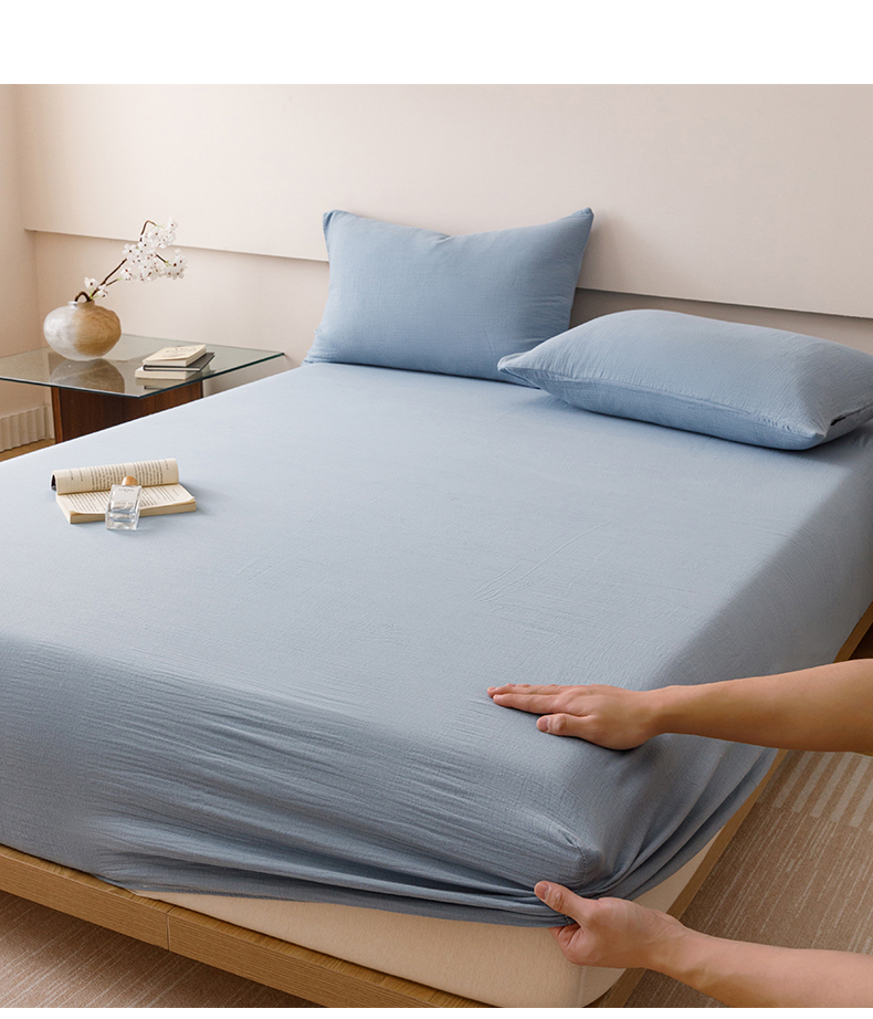 趣色家纺 2025新款全棉皱皱纱单床笠 雾霾蓝
