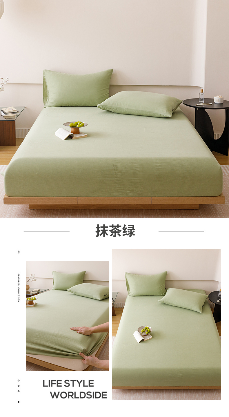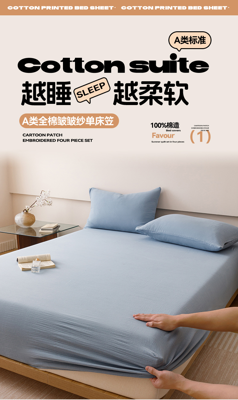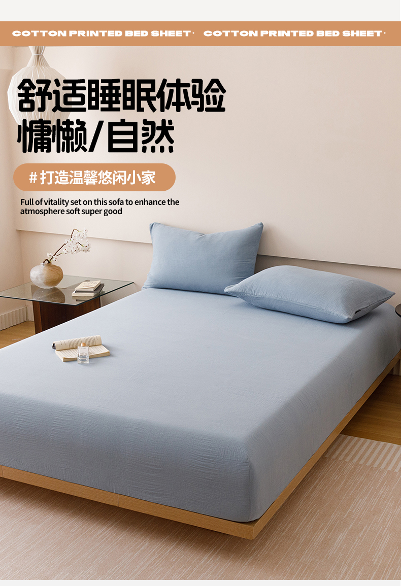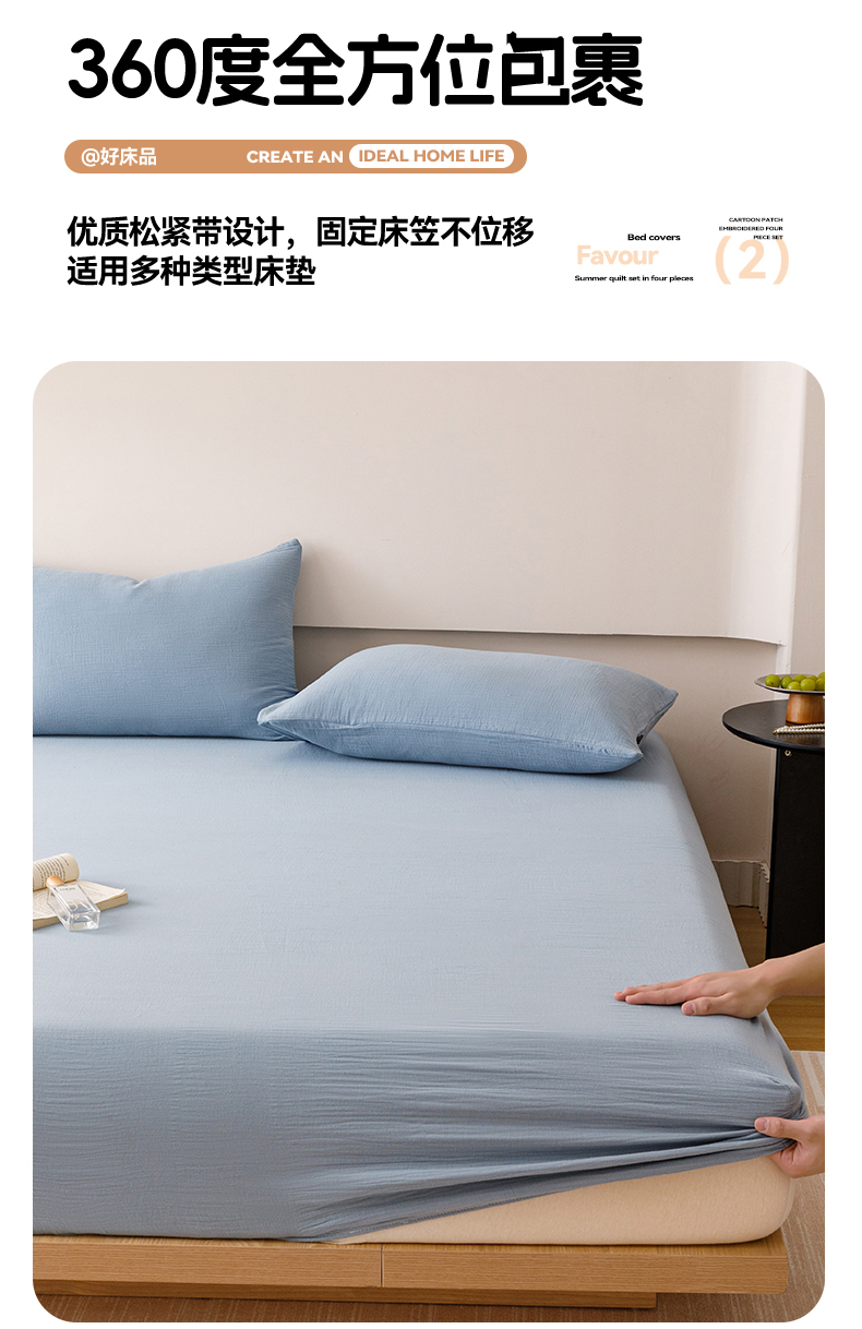 趣色家纺 2025新款全棉皱皱纱单床笠 雾霾蓝