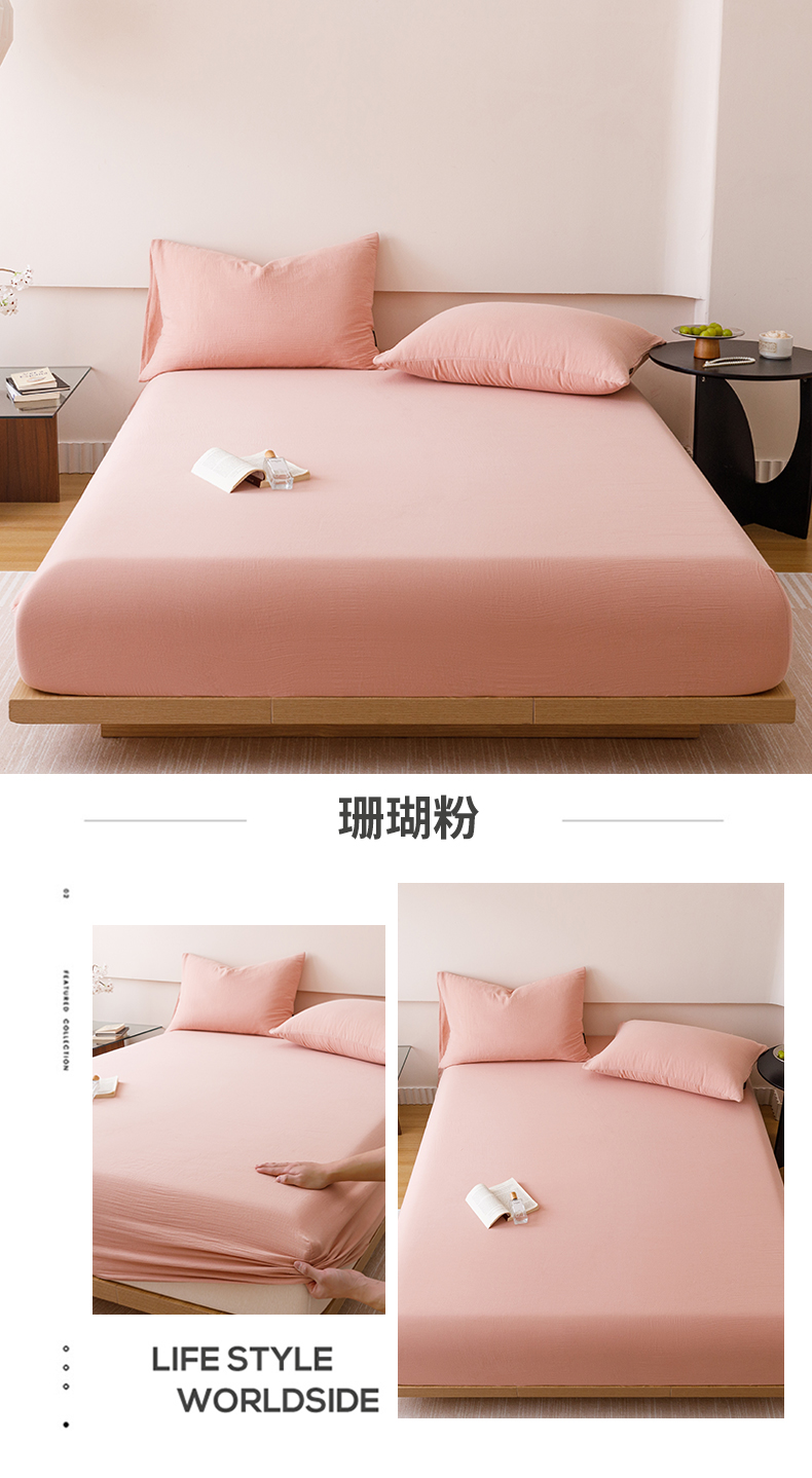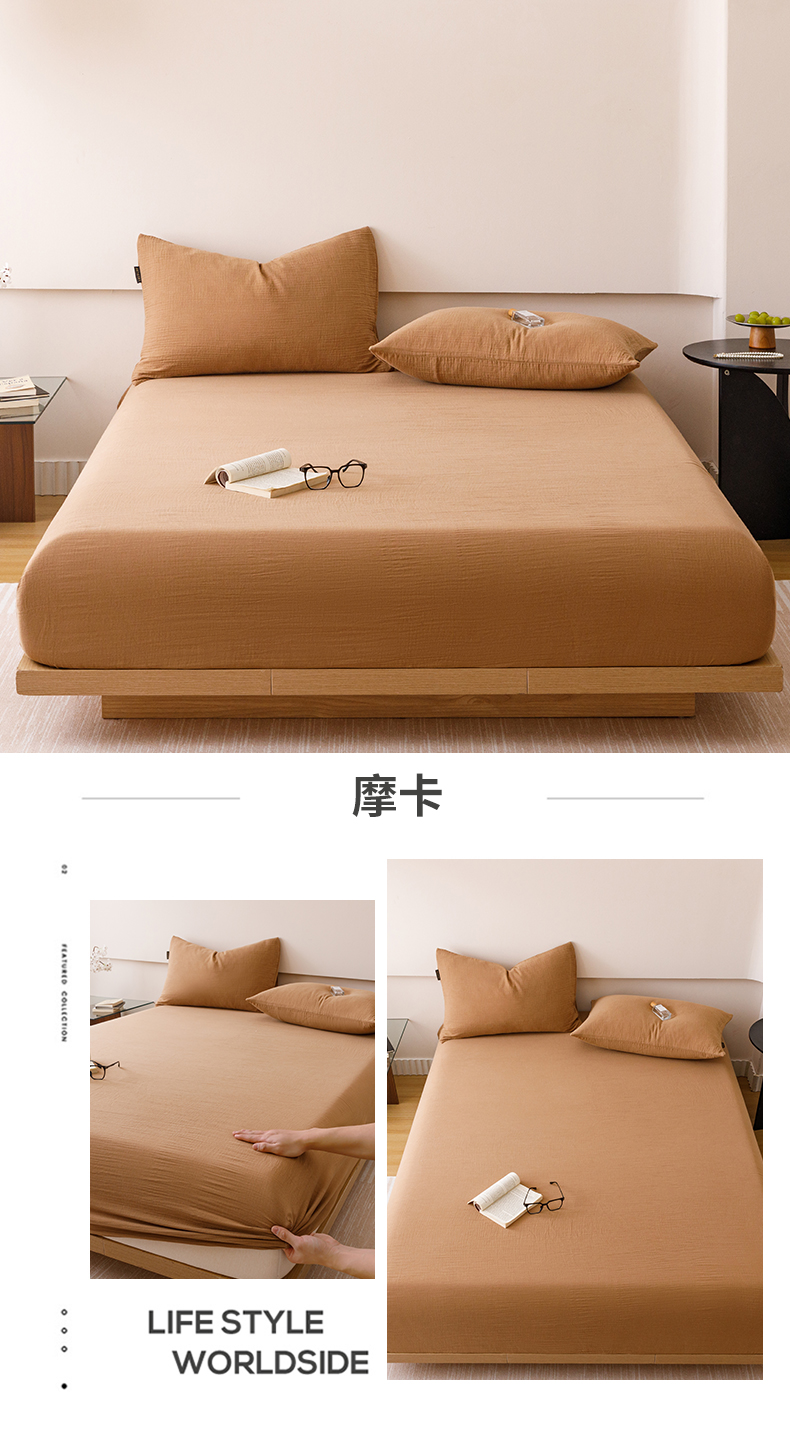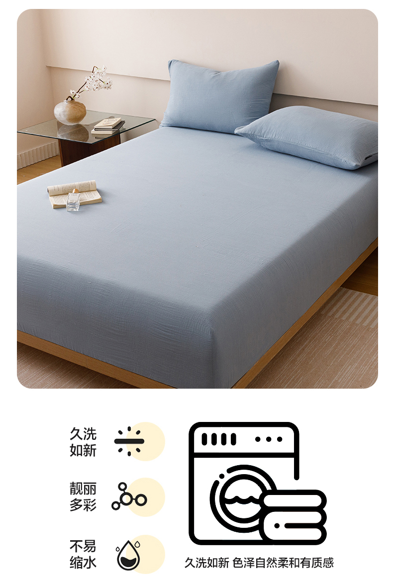 • 91家纺网 家纺一手货源 找家纺 趣色家纺 2025新款全棉皱皱纱单床笠 雾霾蓝