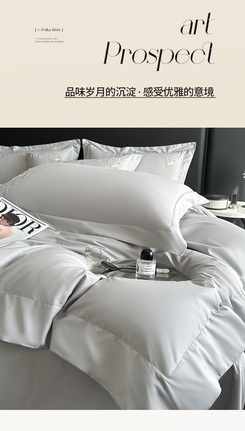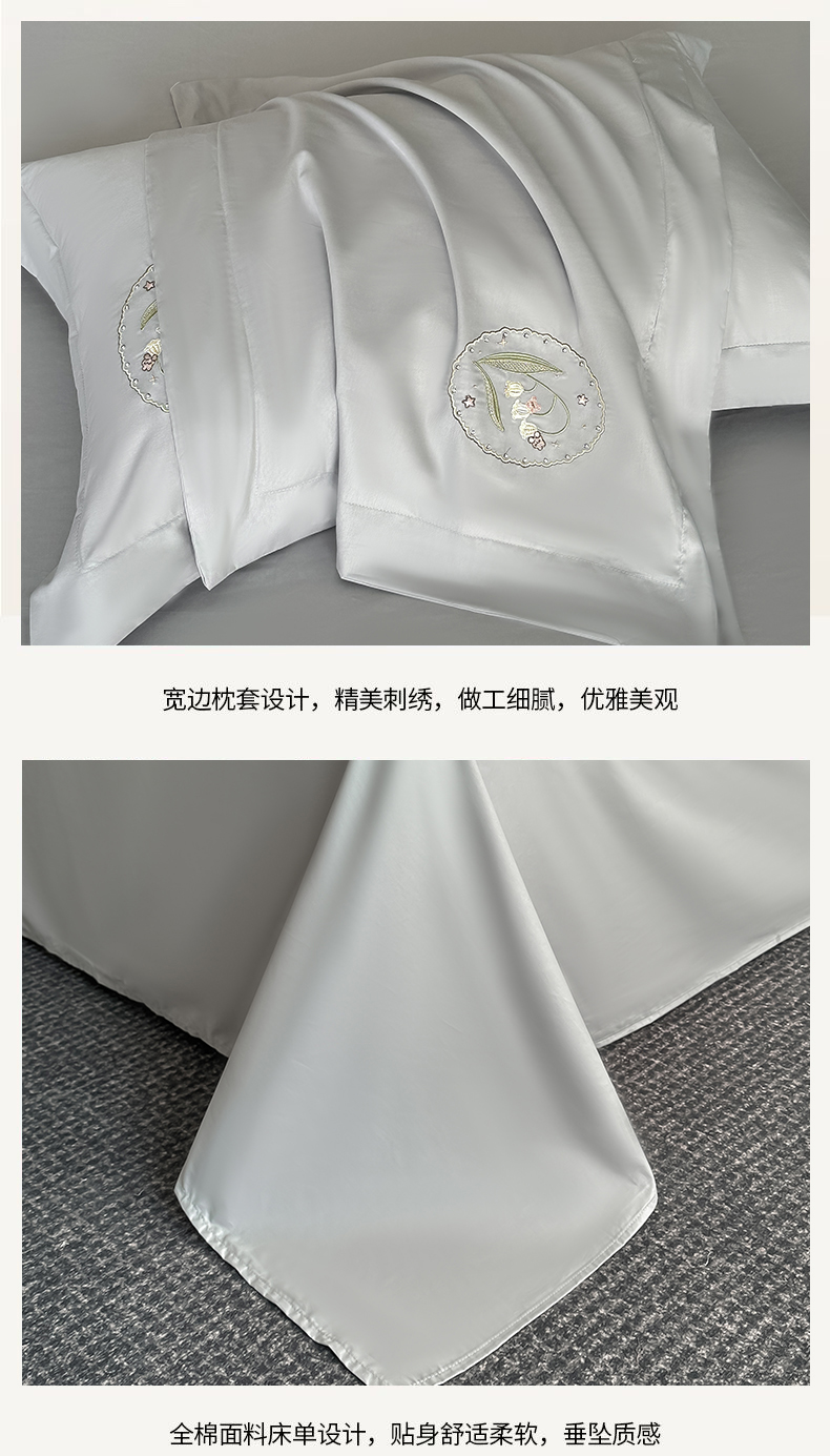 (总)【控价】新方向 2025新款刺绣全棉100s贡缎长绒棉四件套-往事,往事-爵士灰,往事-香槟
