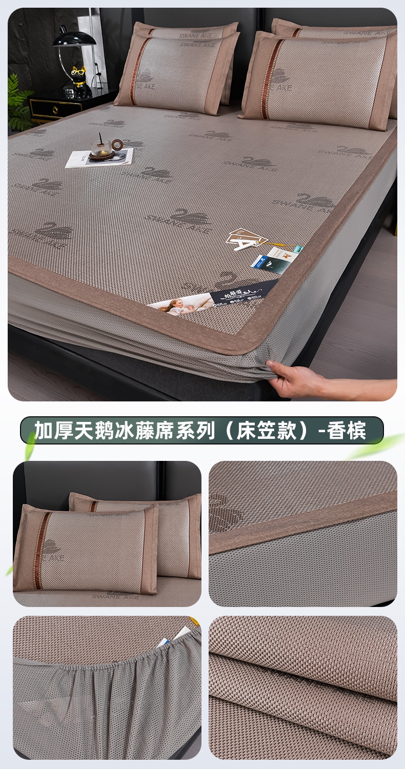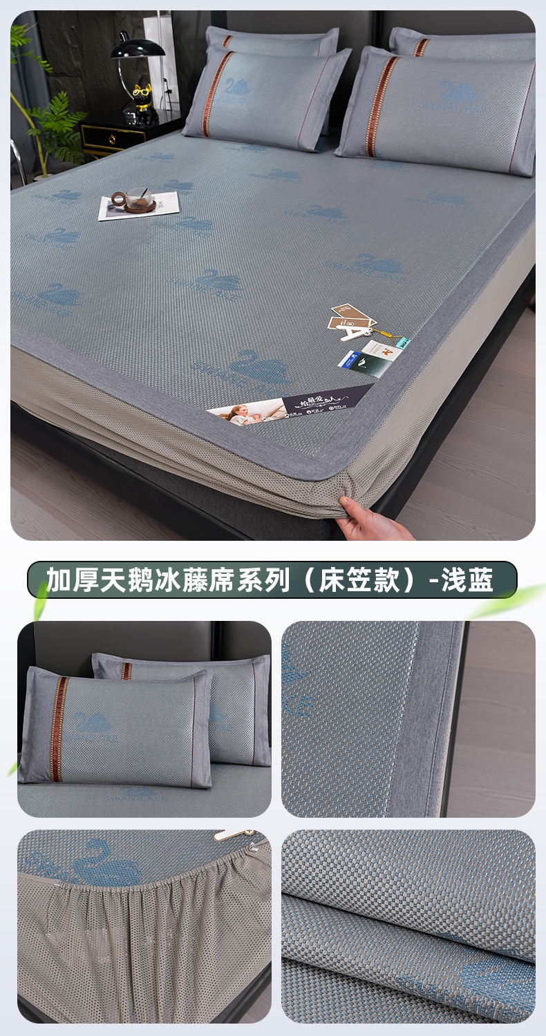 商品名称:(总)小牛席业 2025新款加厚款-天鹅冰藤席系列(床笠款)凉席藤席冰藤席冰丝席竹席草席空调席乳胶席豆豆席