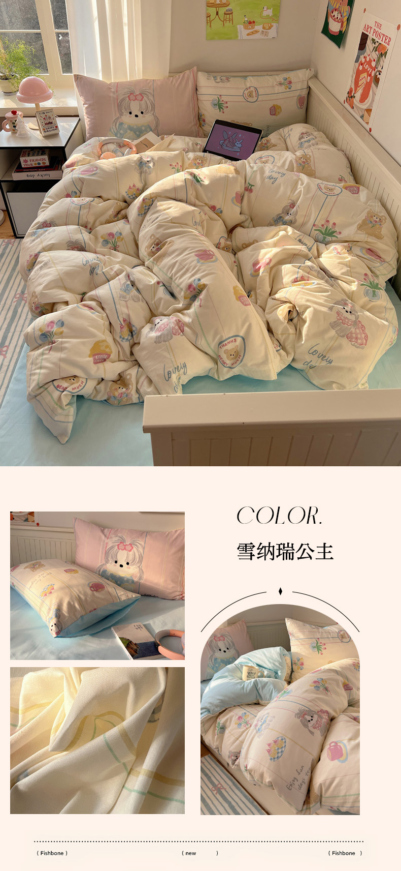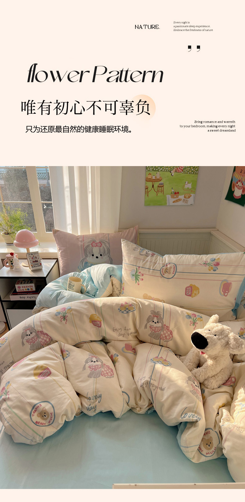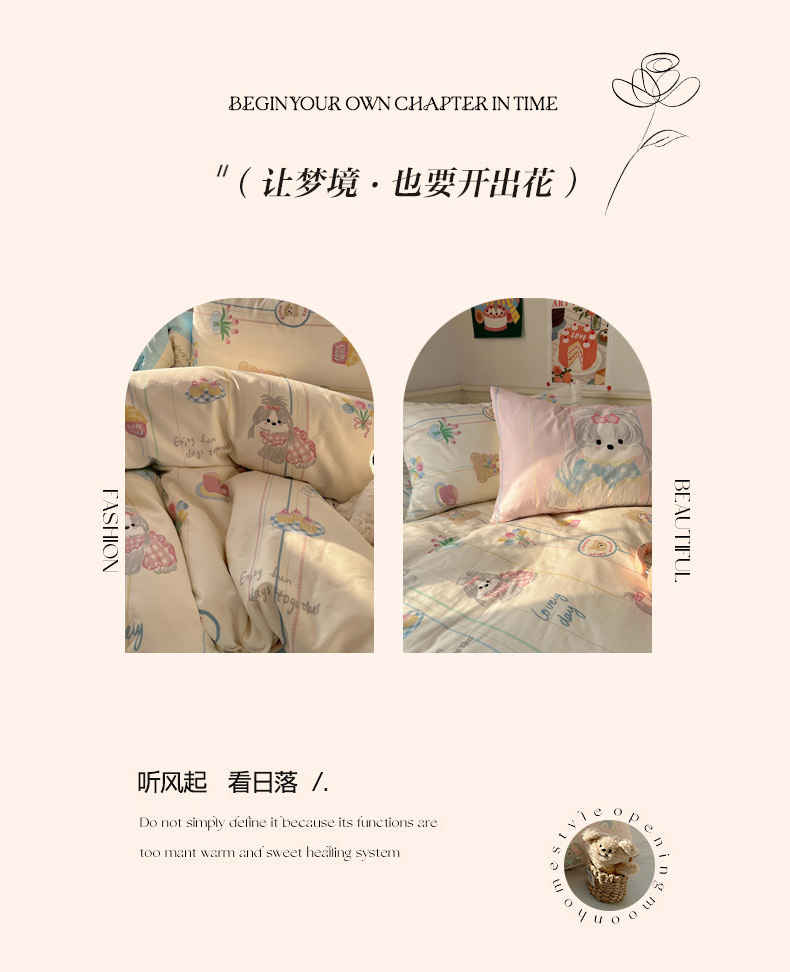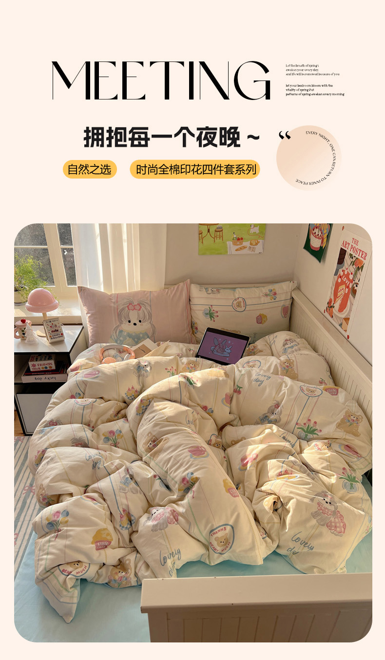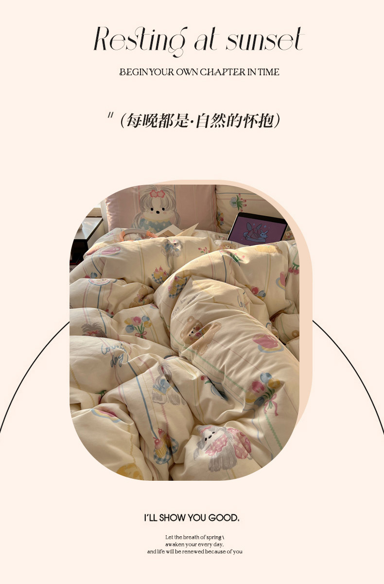 商品名称:丽涵 2025新款全棉13372小清新印花四件套 雪纳瑞公主