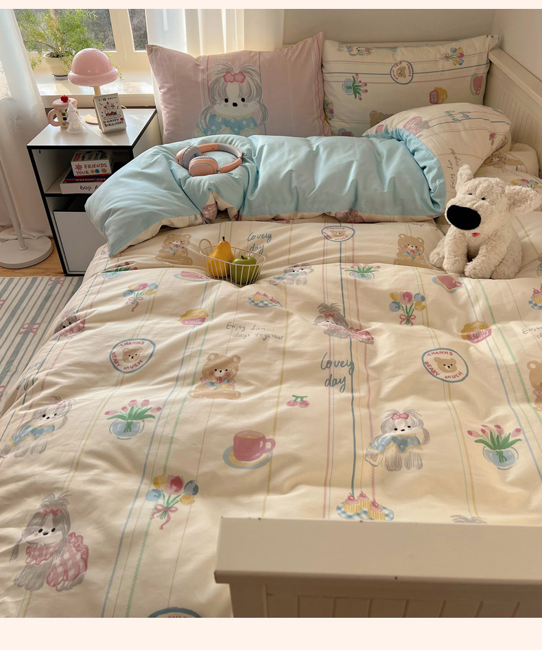 丽涵 2025新款全棉13372小清新印花四件套 雪纳瑞公主