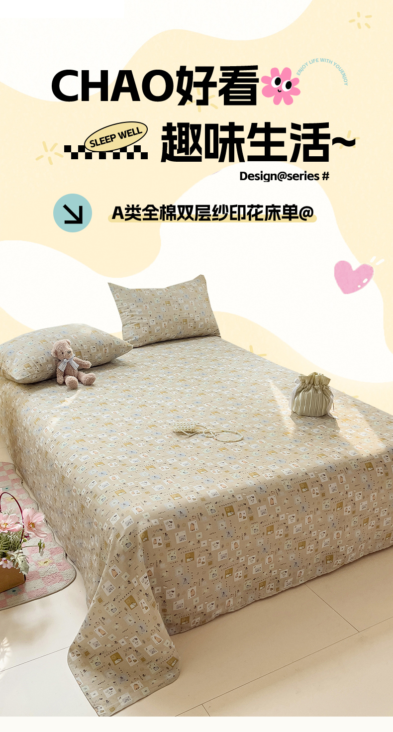 名兮-2025新款全棉双层纱床单 双层纱-波波乐园