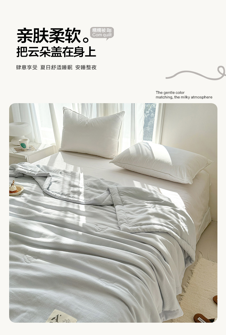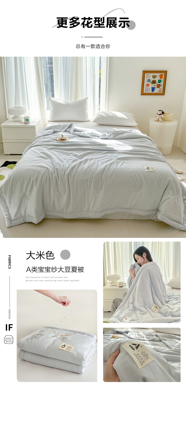 商品名称:佰亿莱 2025新款母婴级无印风超柔宝宝纱大豆夏凉被 浅兰灰