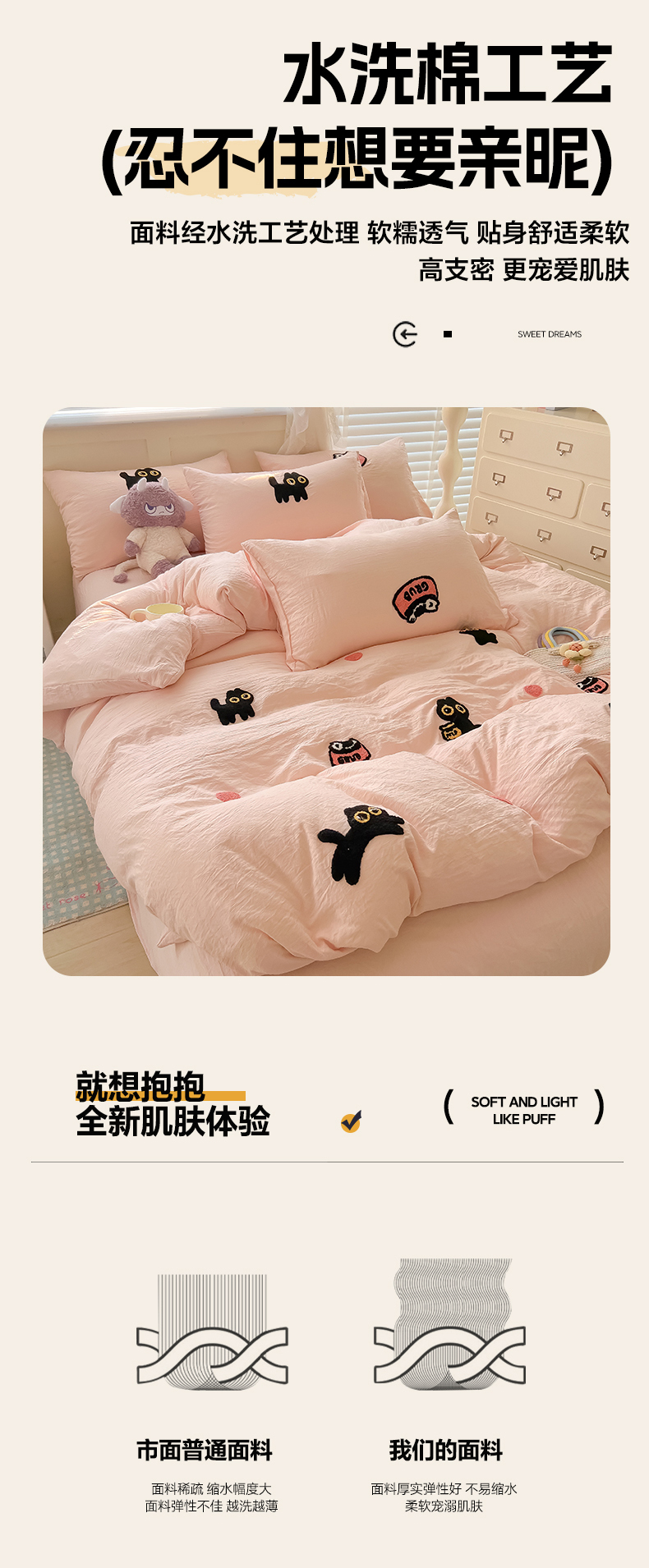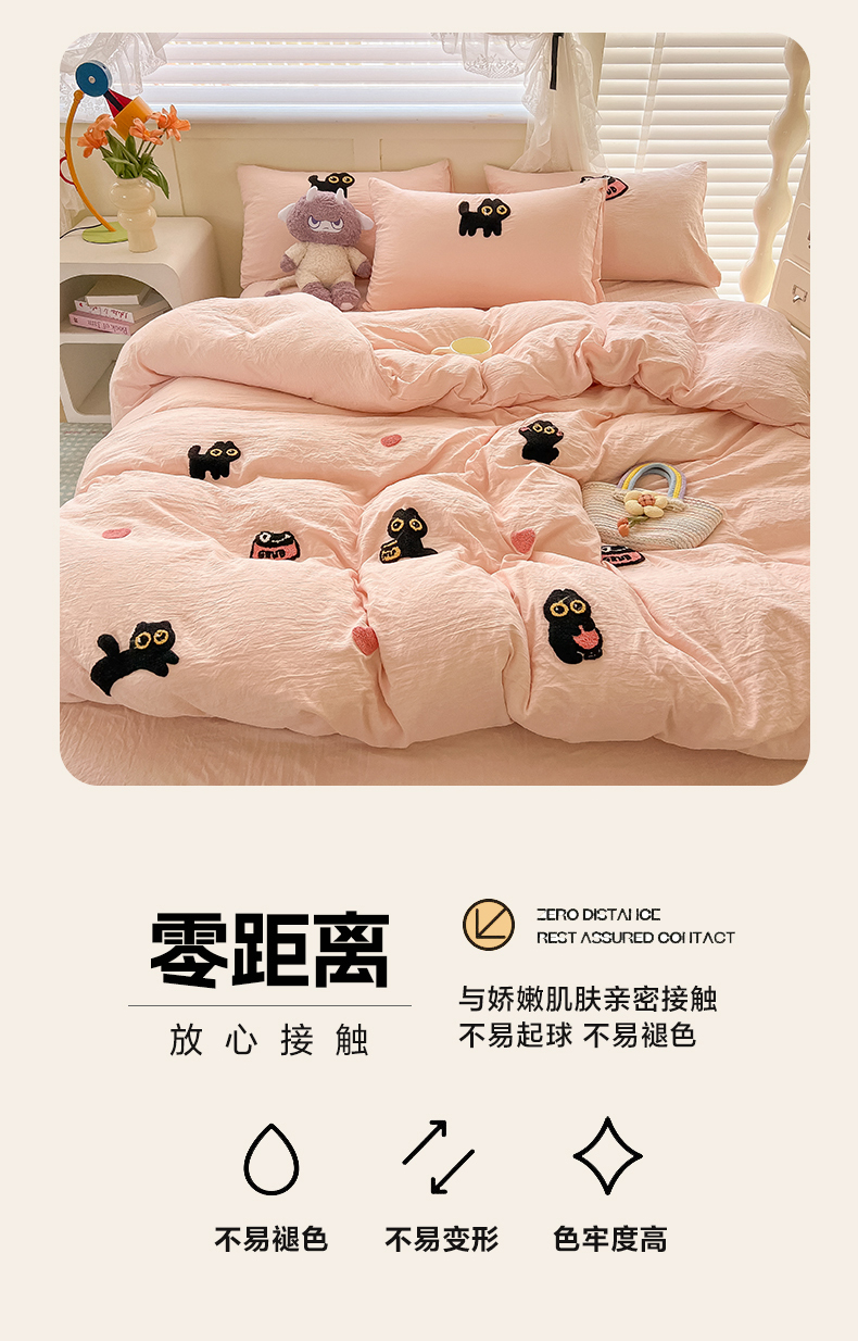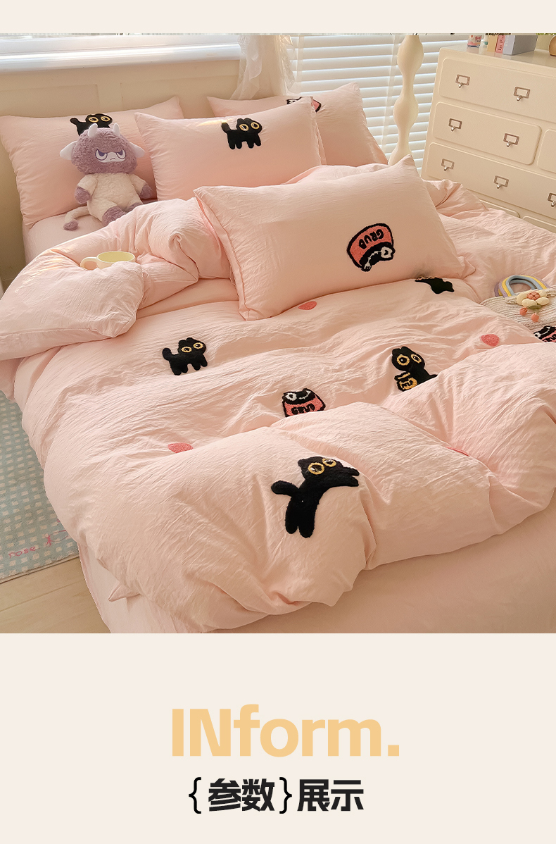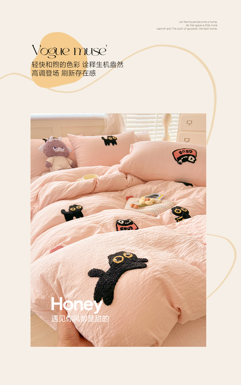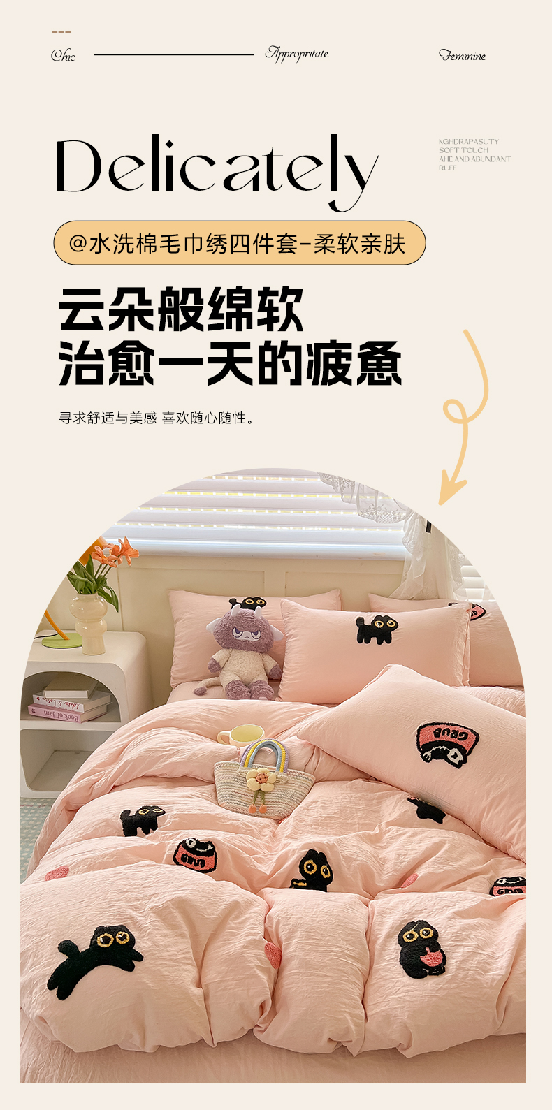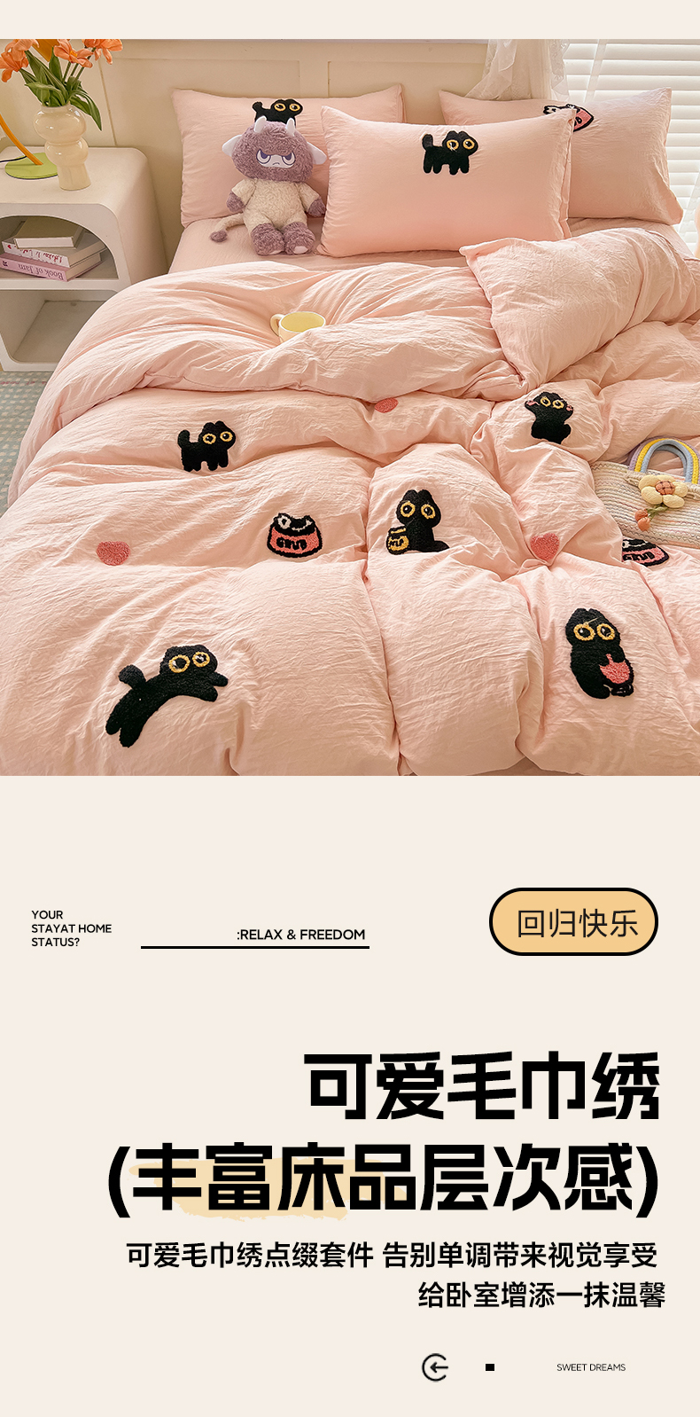 当前位置: 91家纺网 > 商品网购 > 床品套件 > 四件套 > 全棉普通四件套 > 韩巢家纺 2025款四季通用超柔水洗棉毛巾绣四件套-幸运猫系列 幸运猫浅粉
