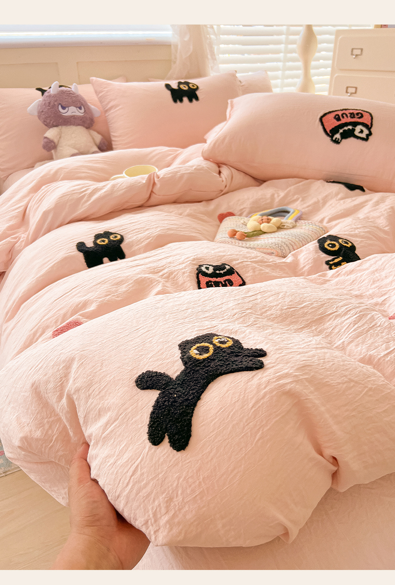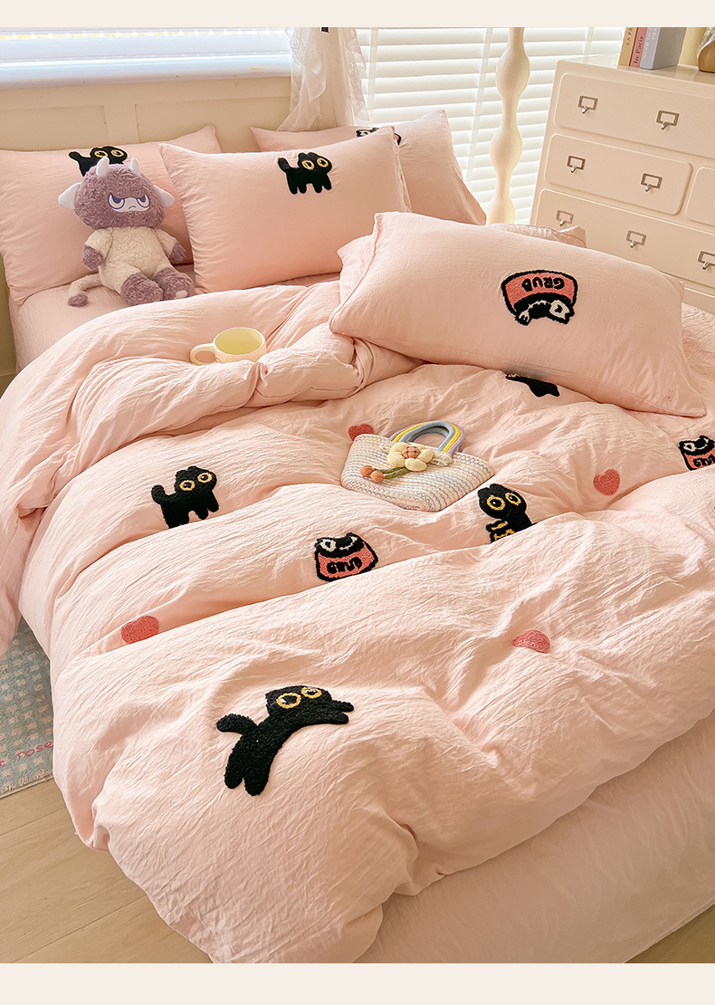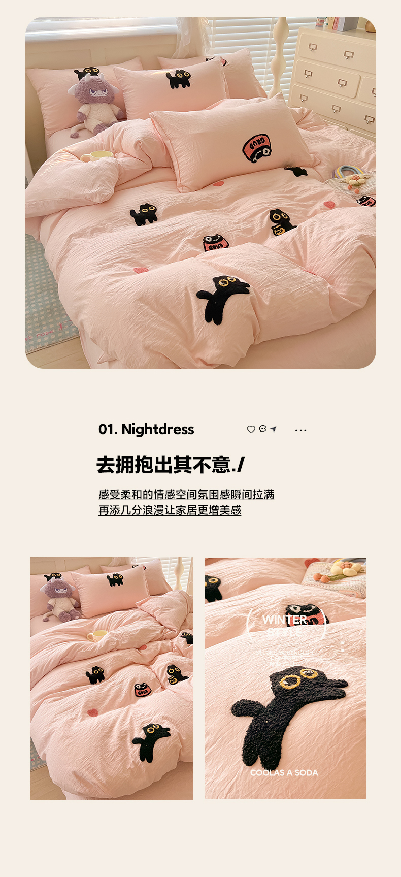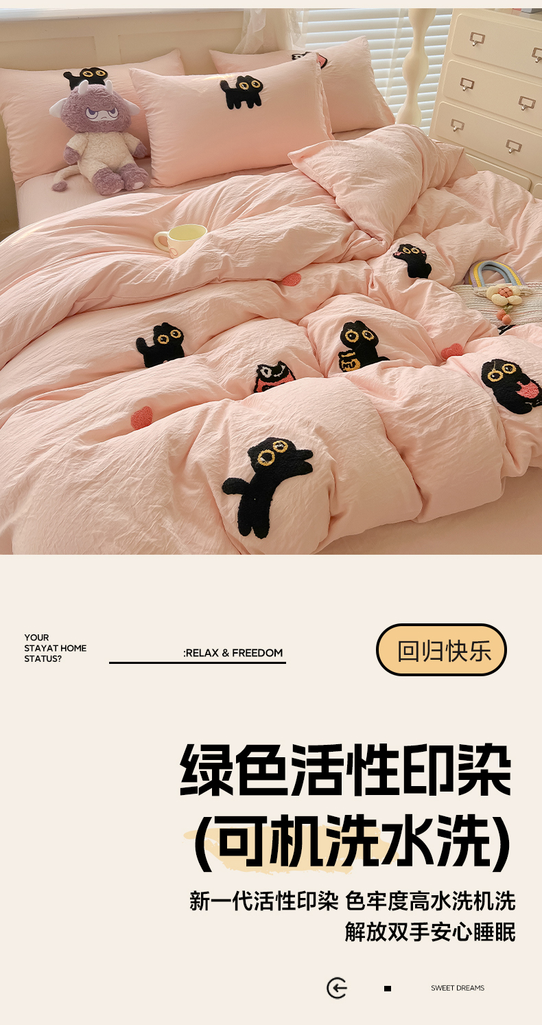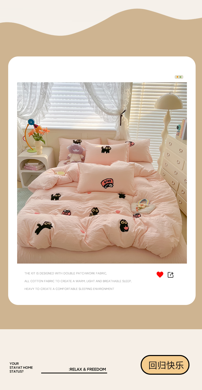 当前位置: 91家纺网 > 商品网购 > 床品套件 > 四件套 > 全棉普通四件套 > 韩巢家纺 2025款四季通用超柔水洗棉毛巾绣四件套-幸运猫系列 幸运猫浅粉