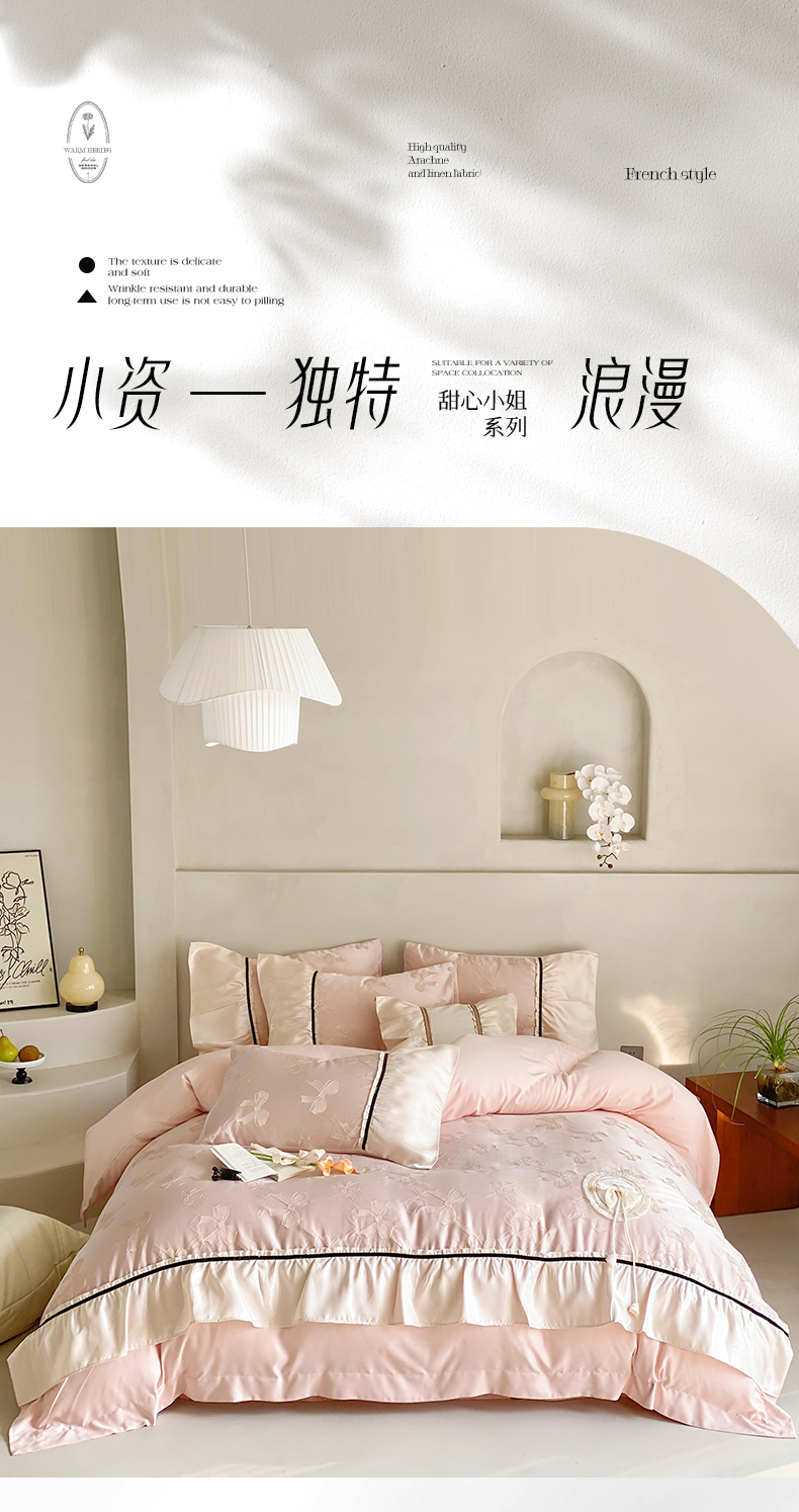 商品名称:(总)奥汀洛家纺 2025新款公主风工艺款水洗天丝四件套-甜心小姐