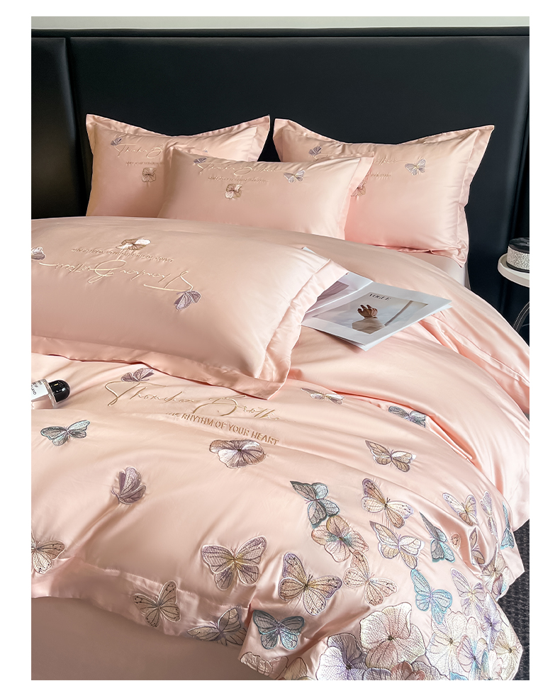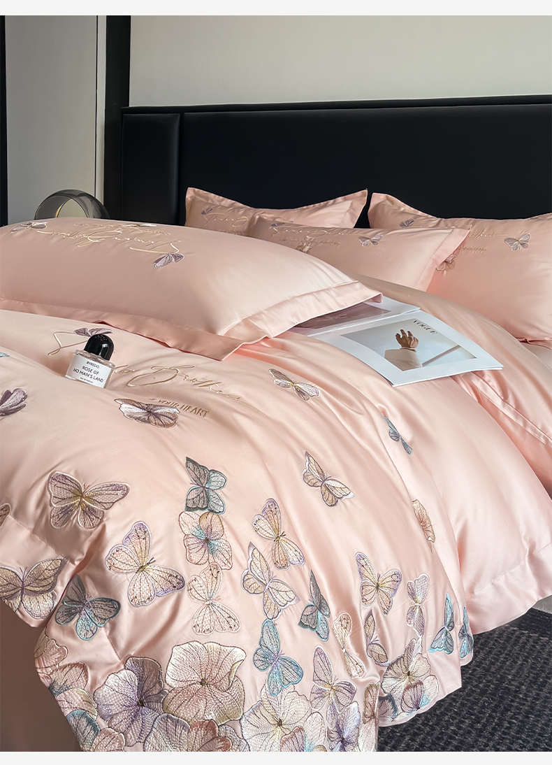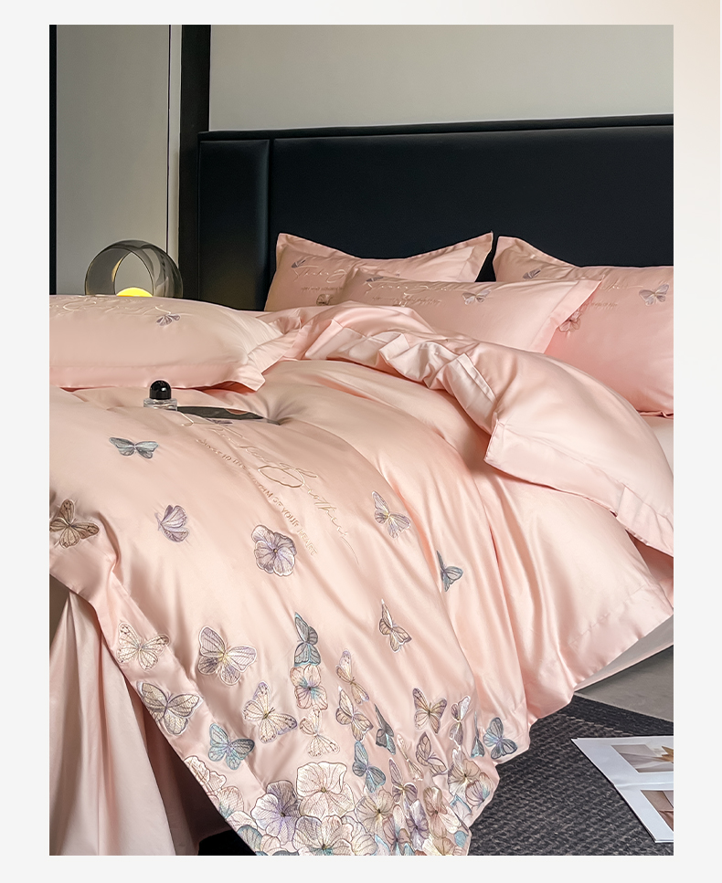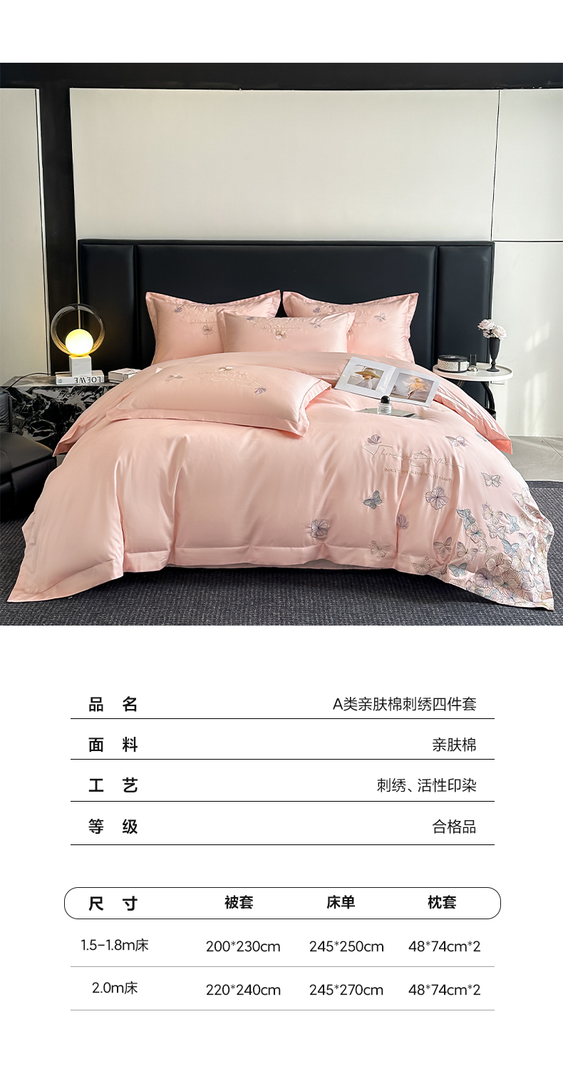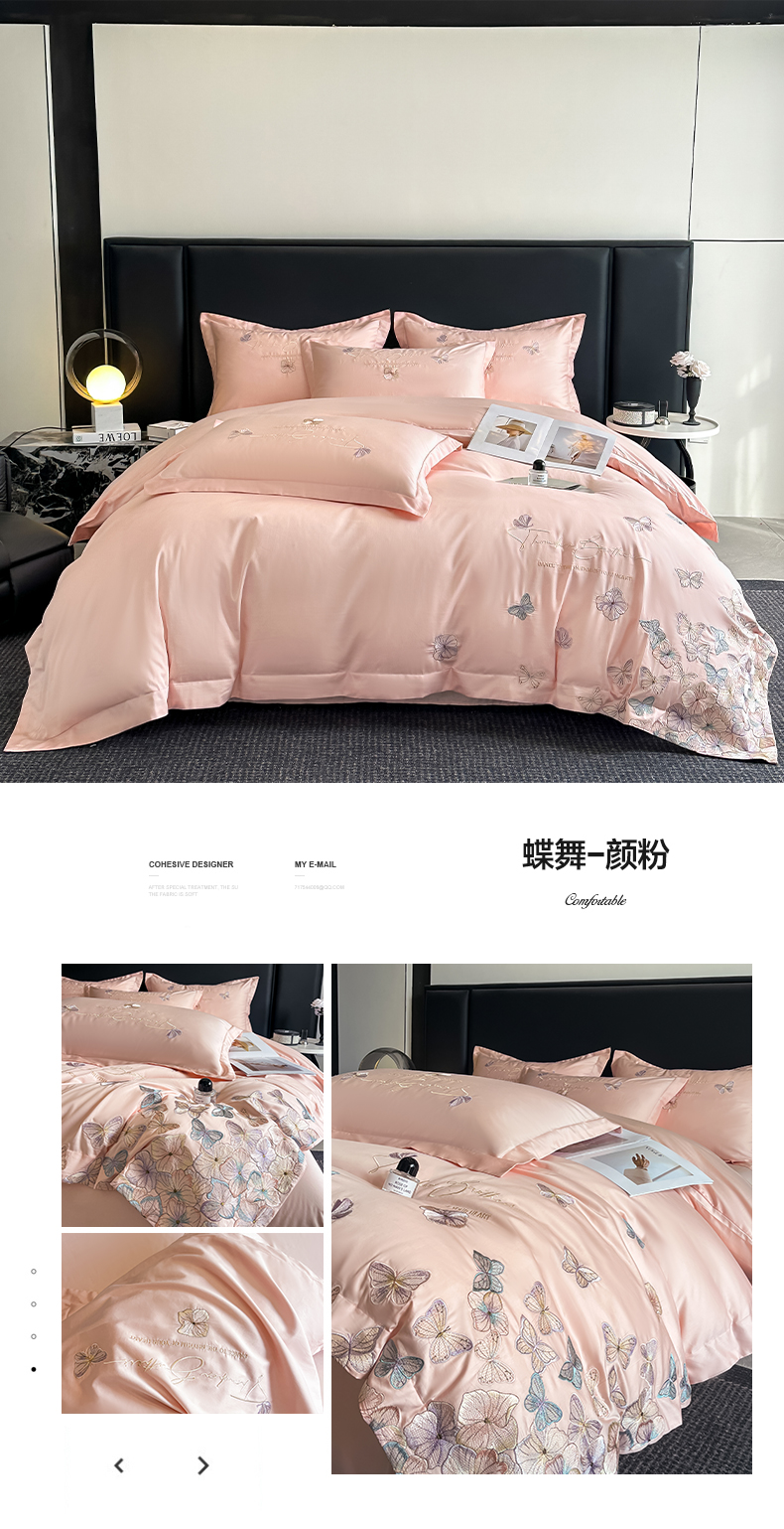 商品名称:欧乐蒂 2025新款A类亲肤棉刺绣四件套-蝶舞 蝶舞-颜粉