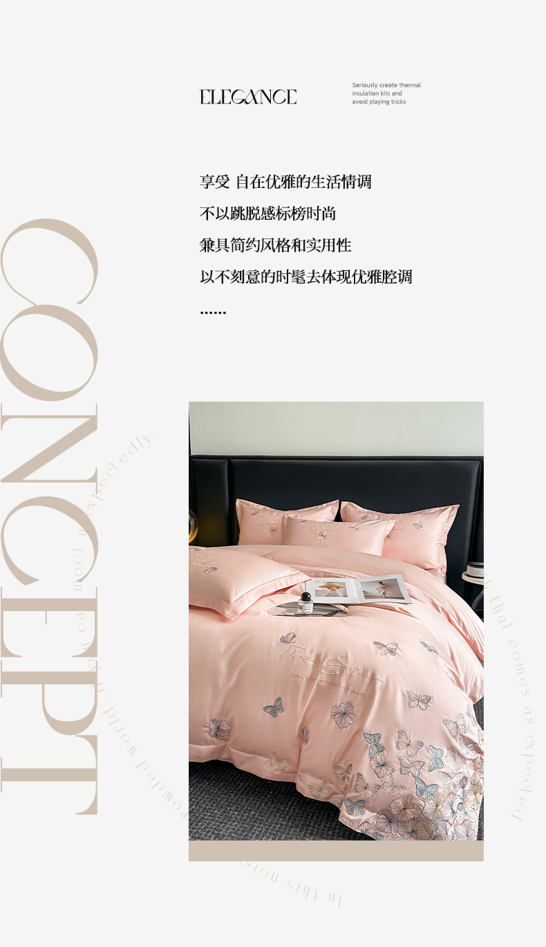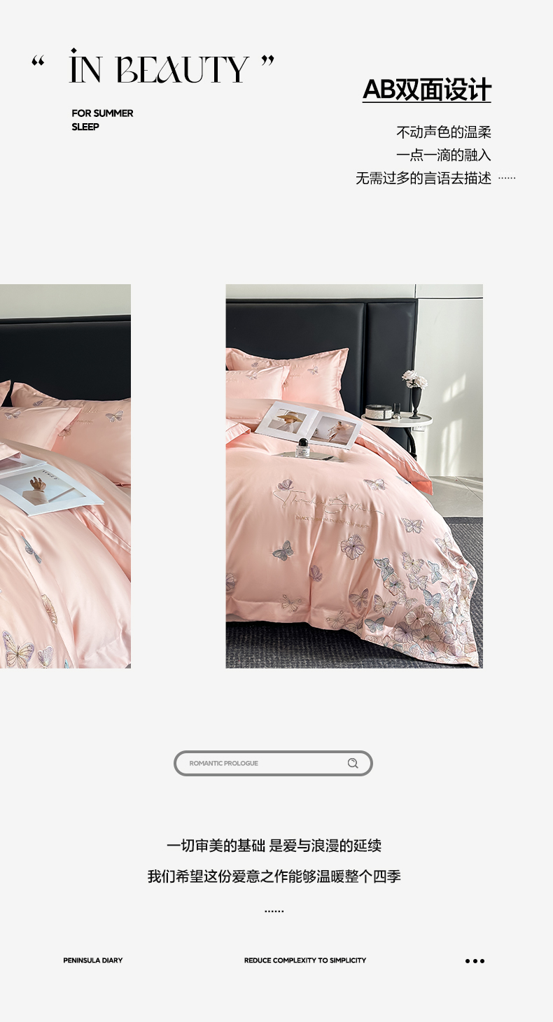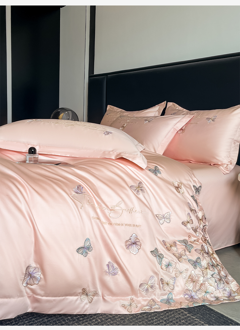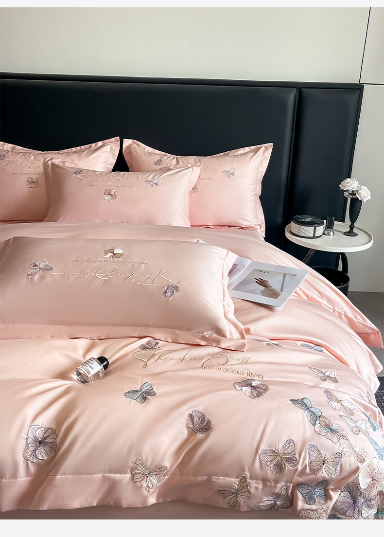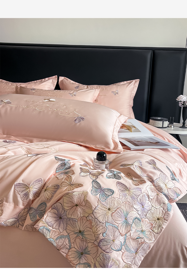 商品名称:欧乐蒂 2025新款A类亲肤棉刺绣四件套-蝶舞 蝶舞-颜粉
