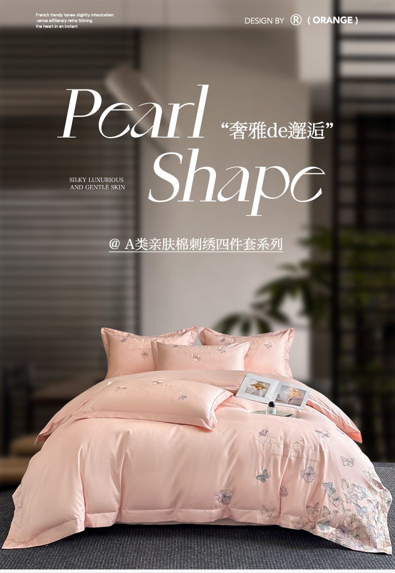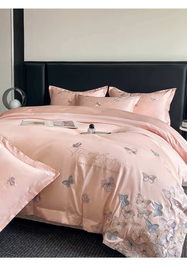 欧乐蒂 2025新款A类亲肤棉刺绣四件套-蝶舞 蝶舞-颜粉