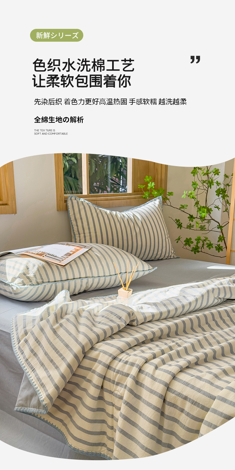 • 91家纺网 家纺一手货源 找家纺 被窝 2025新款全棉色织水洗棉夏被贝壳边大豆夏被空调被全棉夏凉被 野原-兰