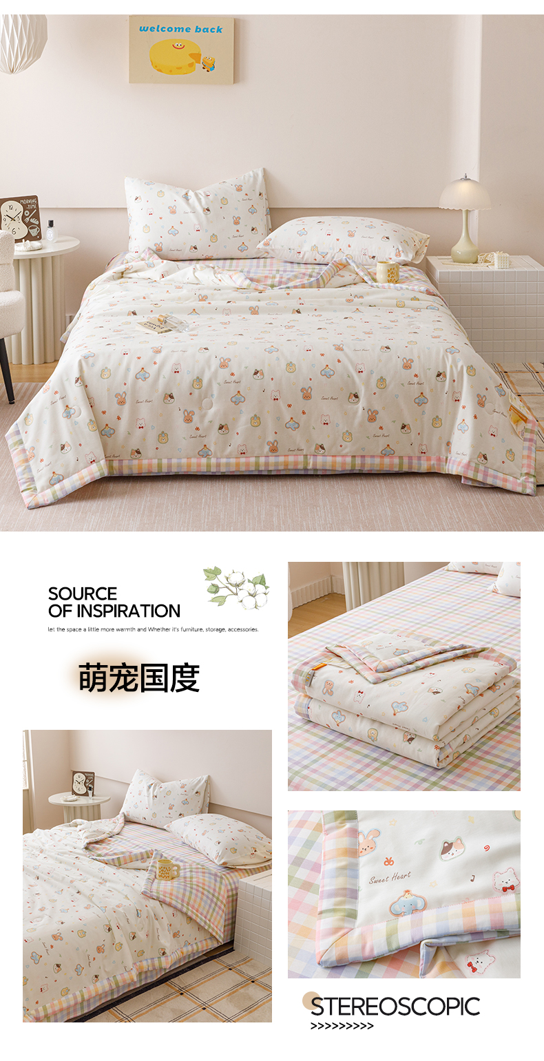 商品名称:一加一 2025新款全棉印花新疆棉花夏被四件套 萌宠国度