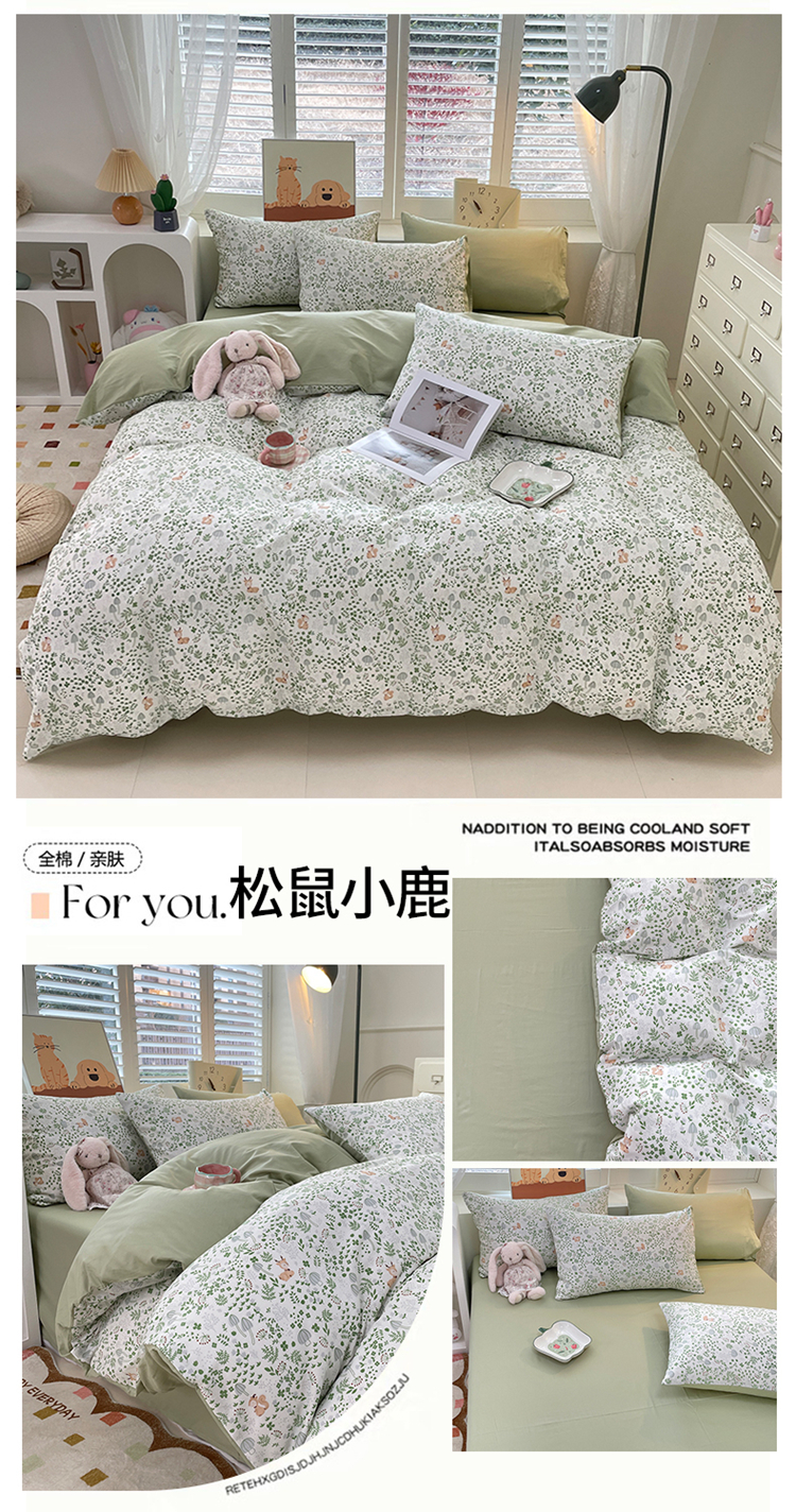 • 91家纺网 家纺一手货源 找家纺 宜家坊 2025全棉13070单被套印花小清新卡通碎花纯棉单品被套枕套(有预缩售后无忧 免费提供买家秀) 松鼠小鹿