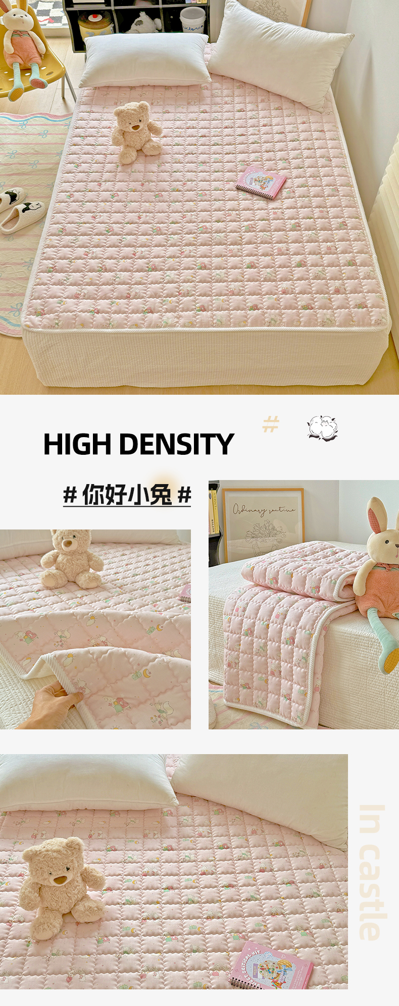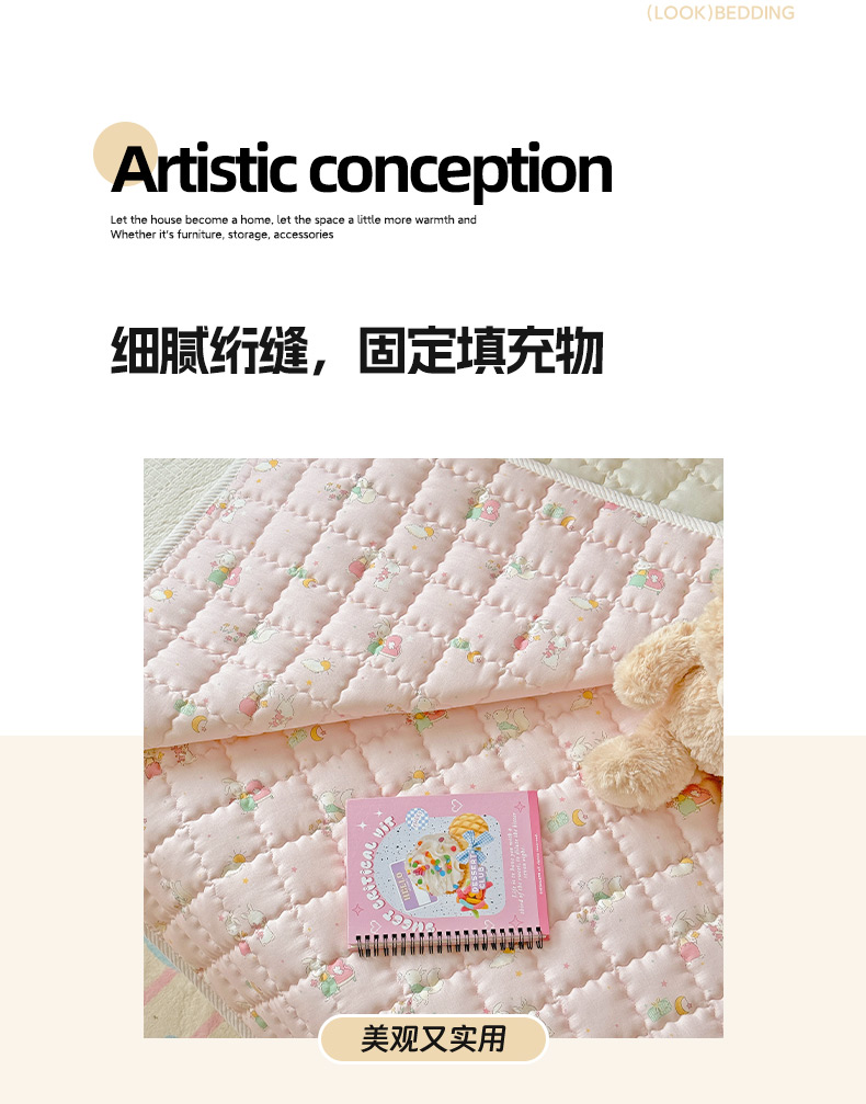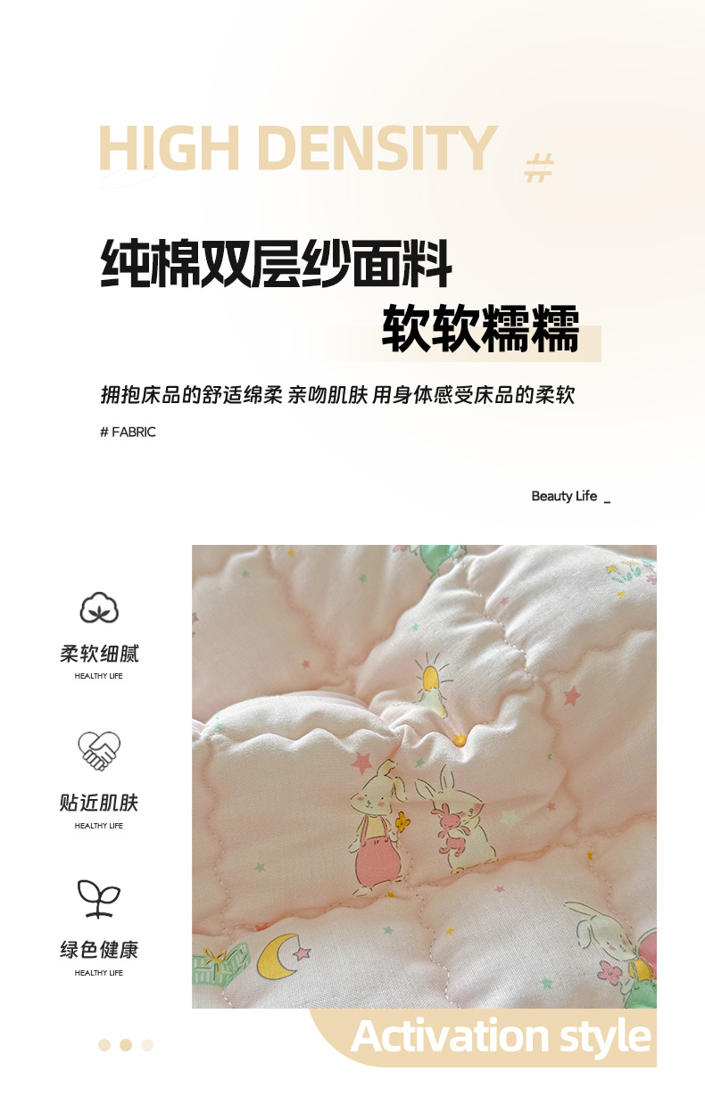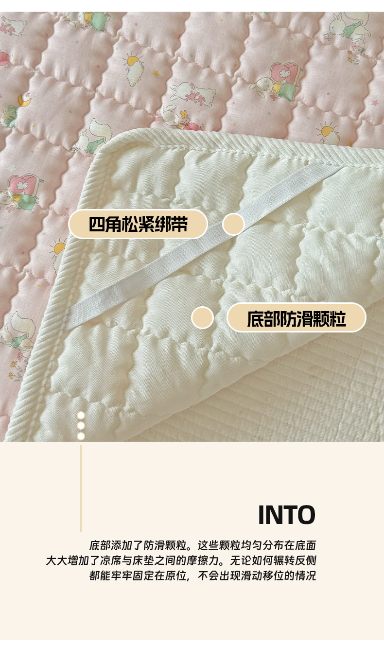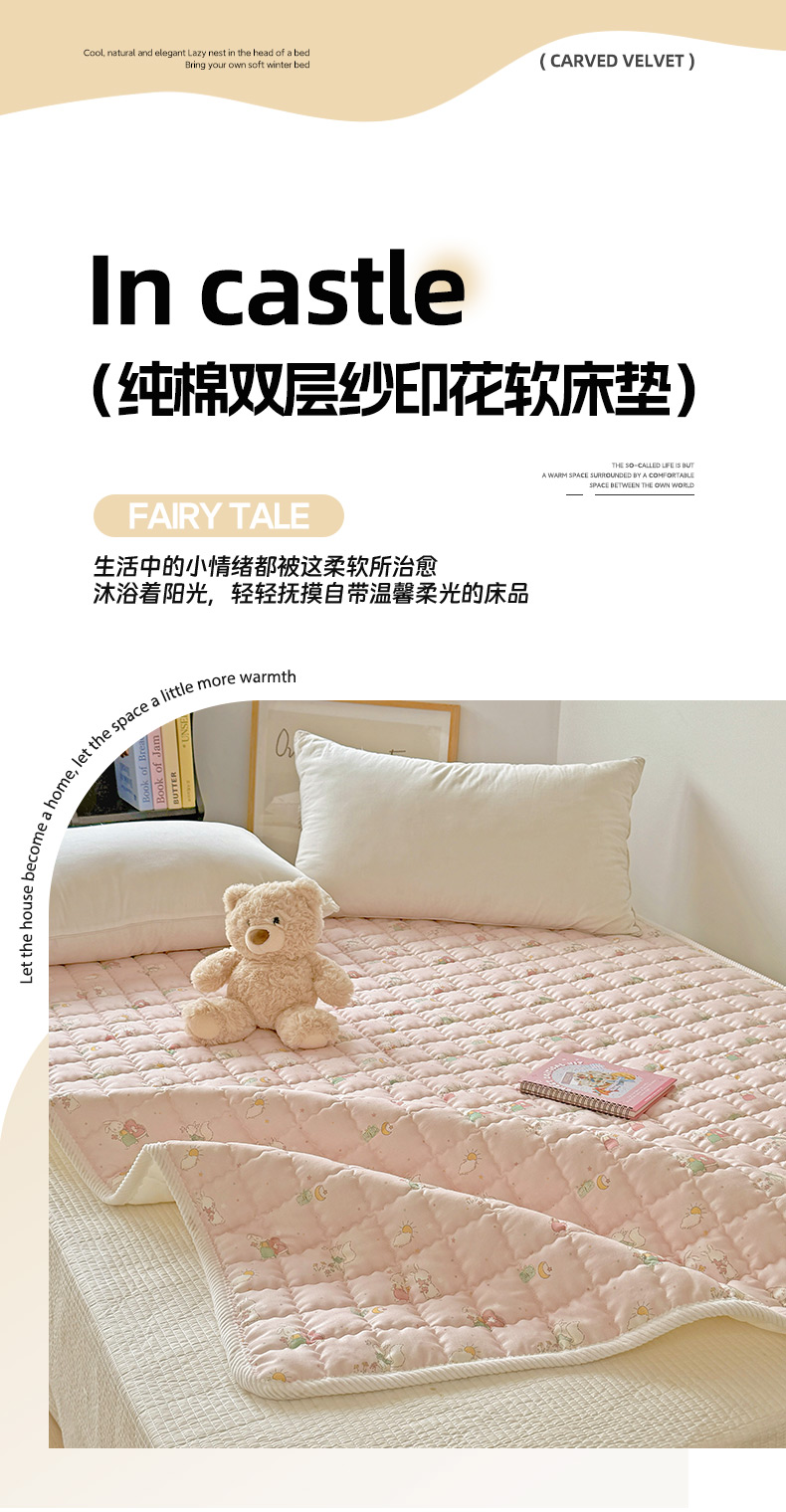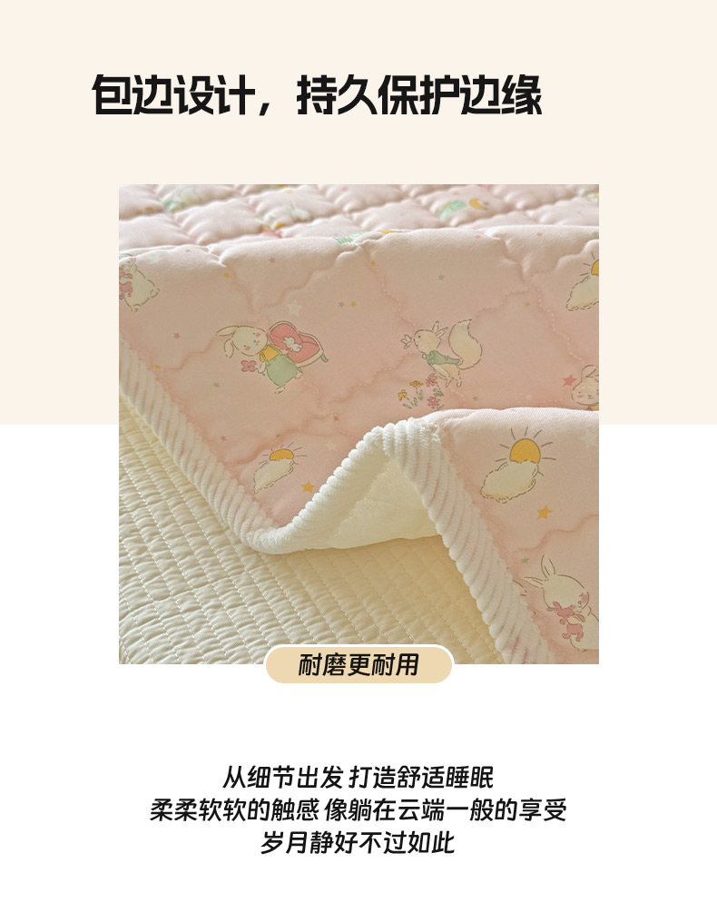 商品名称:澳萝拉 2025新款纯棉双层纱印花软床垫床褥 你好小兔