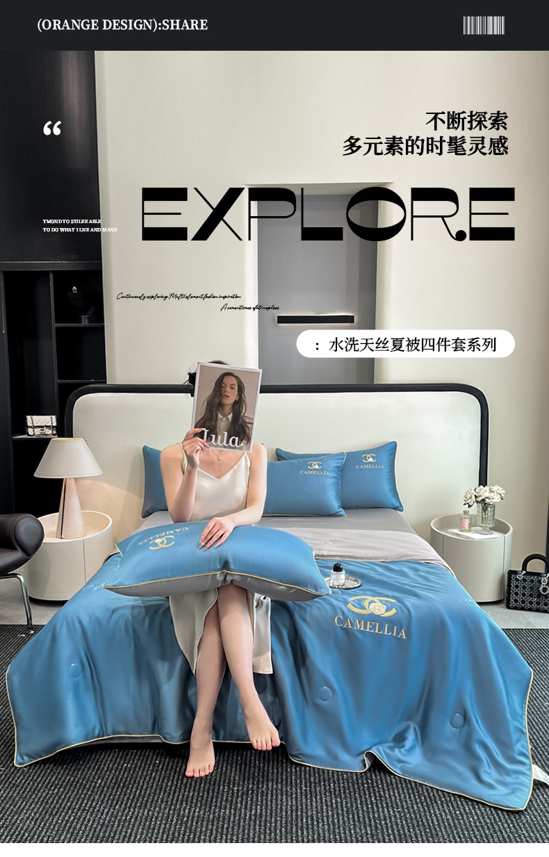 商品名称:(总)利欧 2025新款茶花水洗天丝夏被四件套