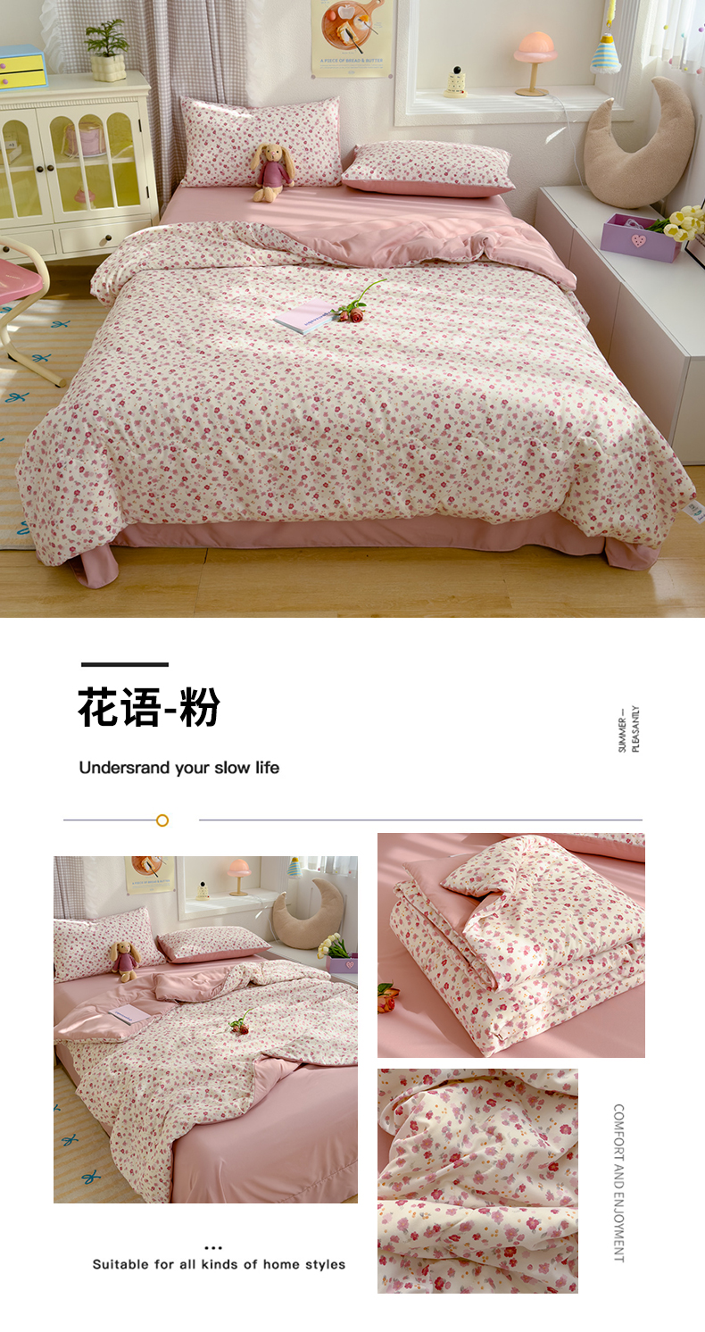弗苓家纺 2025 A类有氧针织双层纱夏被四件套直播爆款 花语-粉