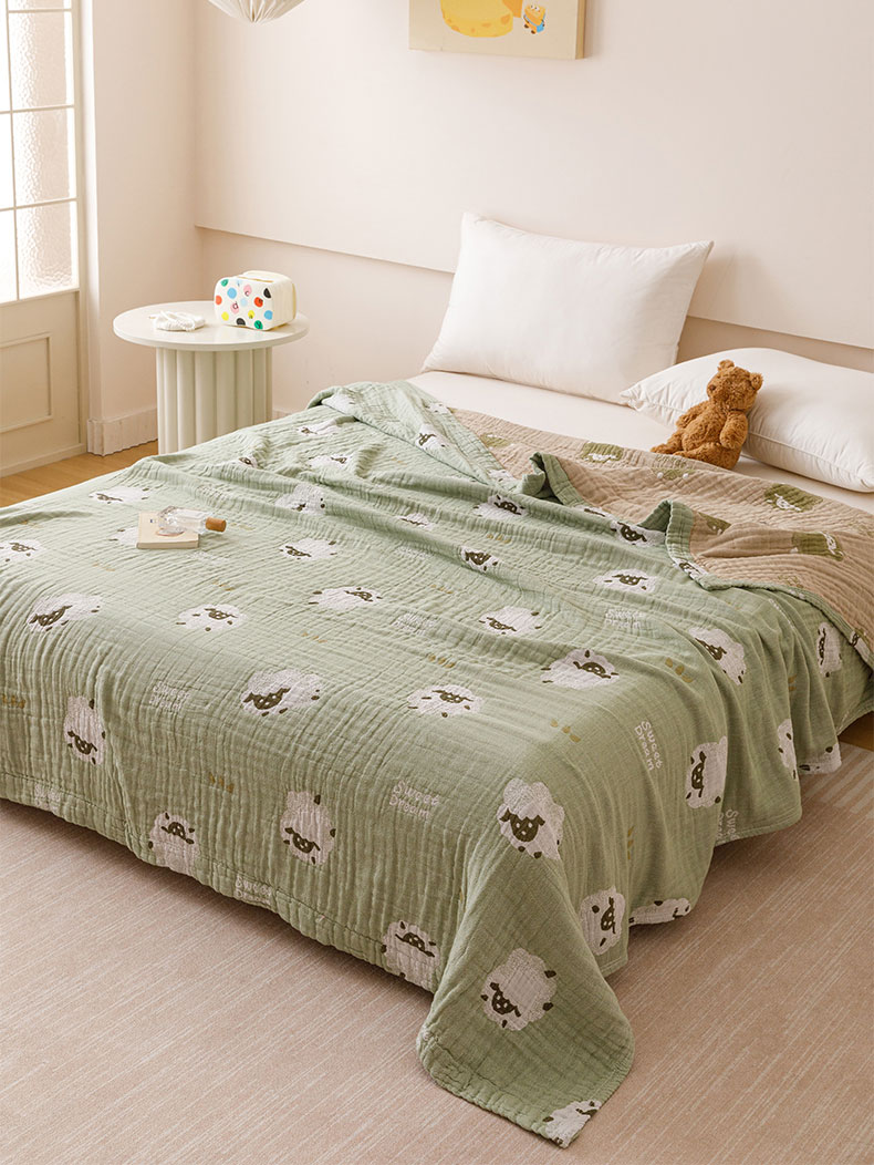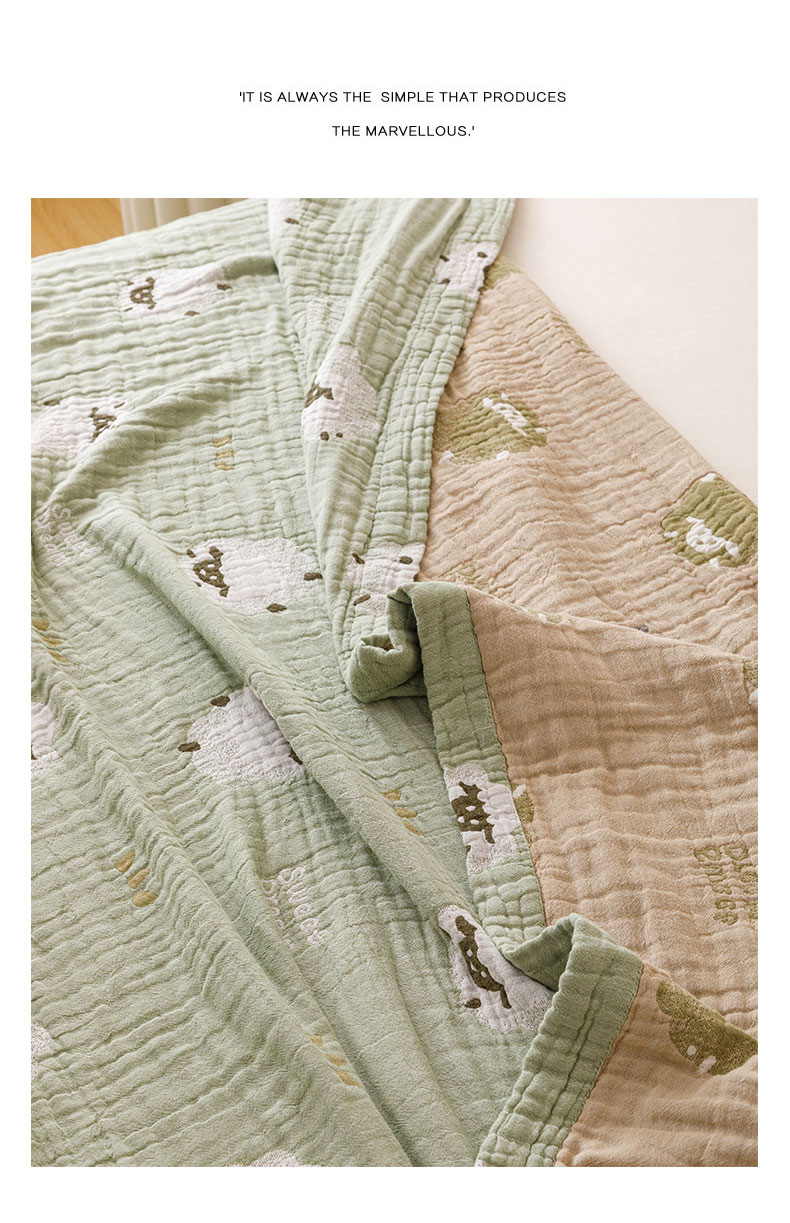商品名称:麻依 2025新款四层全棉纱布毯盖毯毛巾被子被芯 咩咩羊