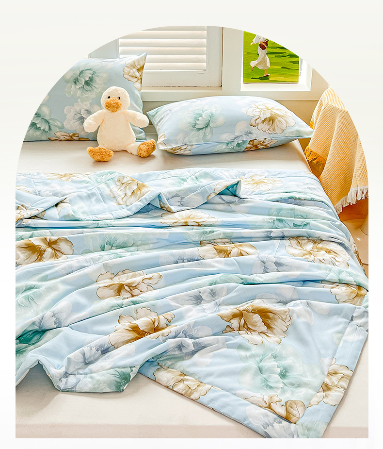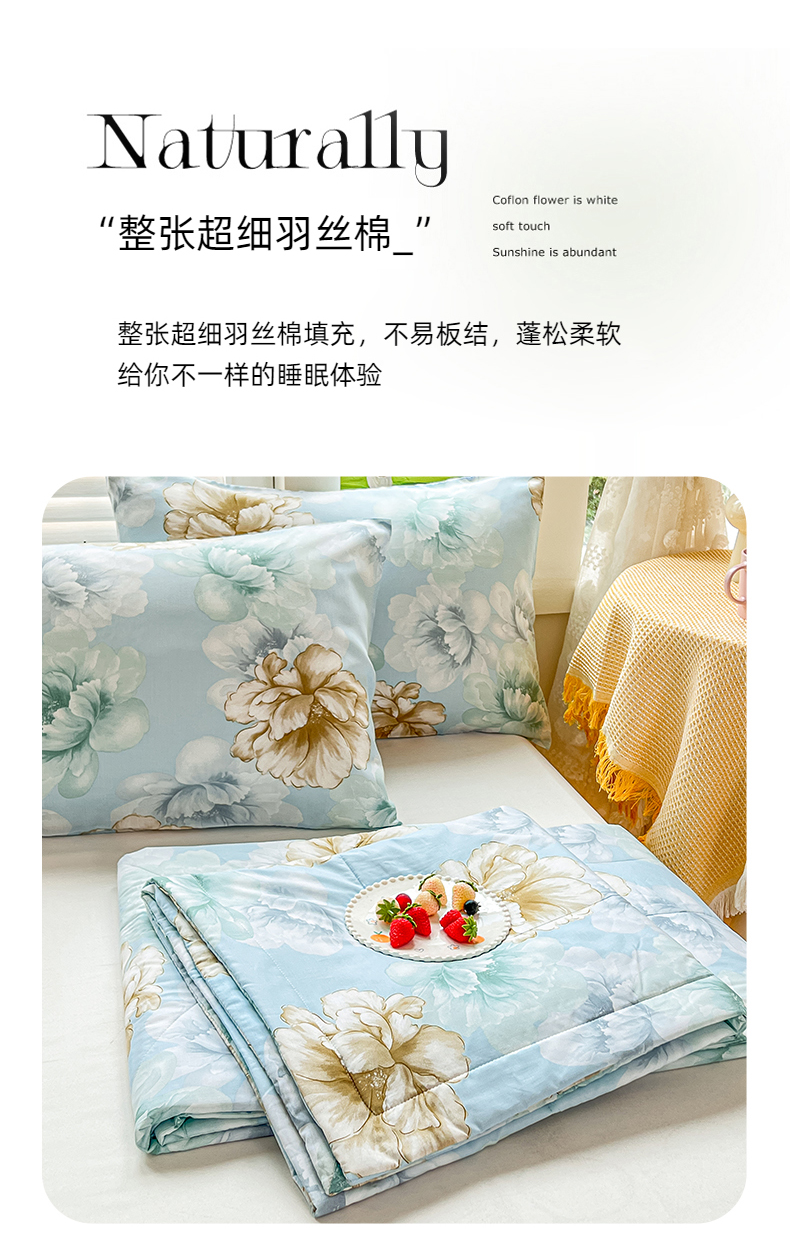 商品名称:天瑜 2024新款棉绸苏香绸舒香绸夏被人造棉夏凉被 盛世牡丹蓝