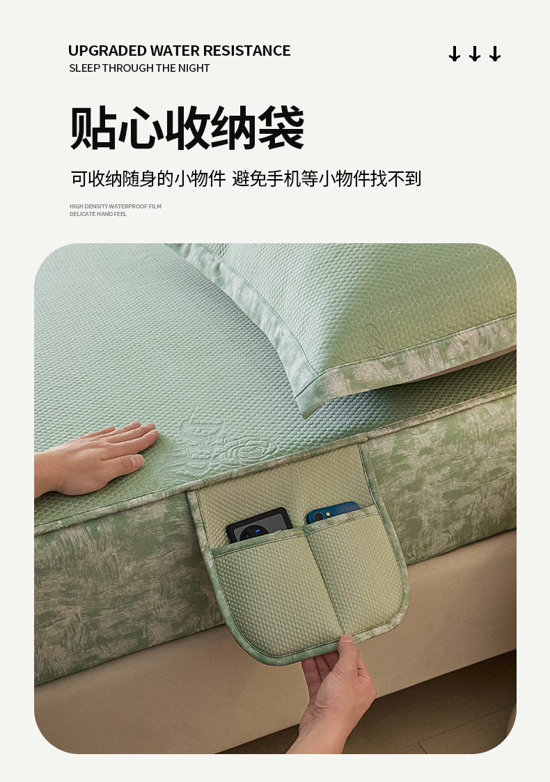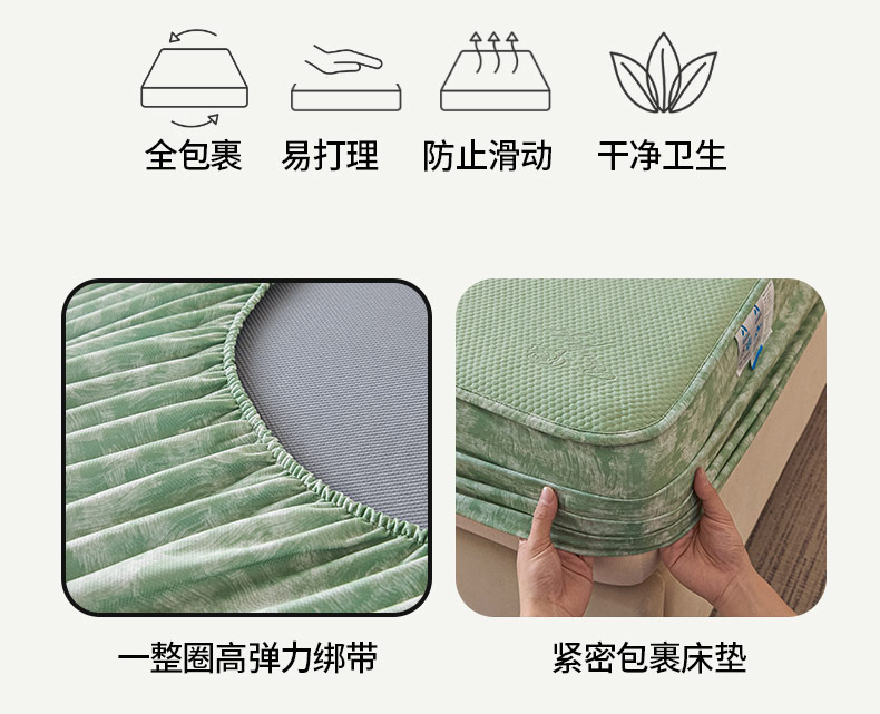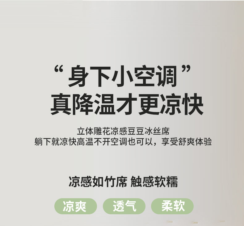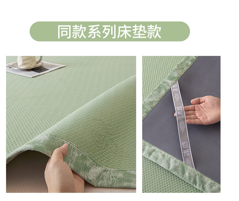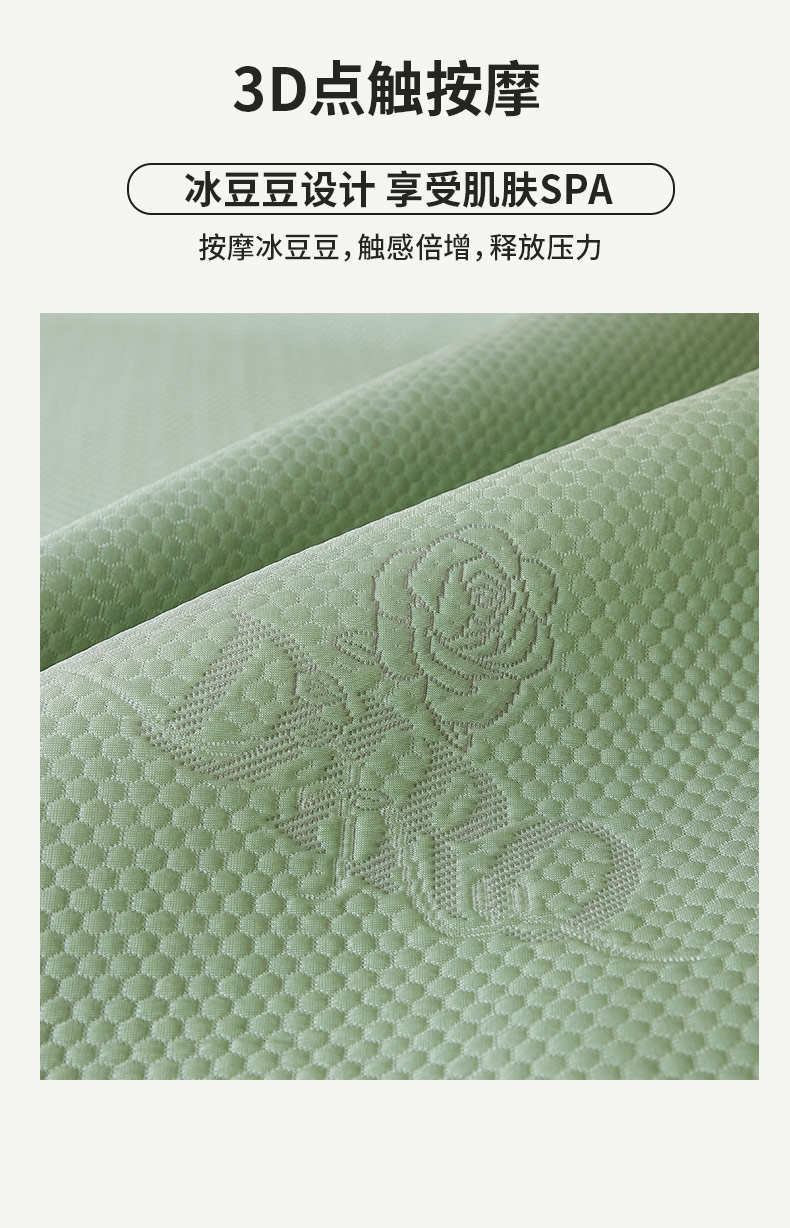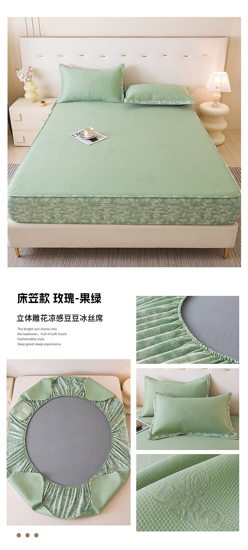商品名称:鑫琪莱 2025新款5D立体雕花凉感豆豆冰丝席凉席席子系列 床笠款-玫瑰-果绿
