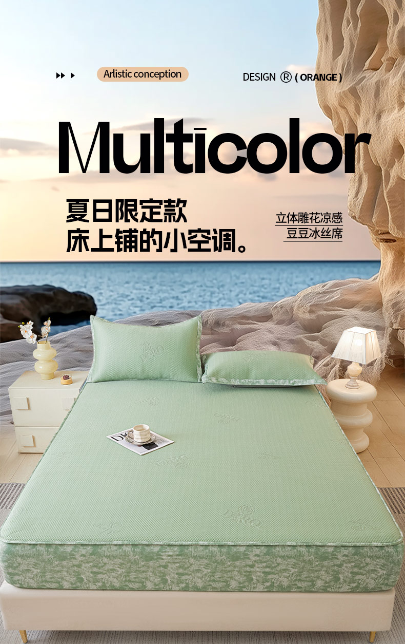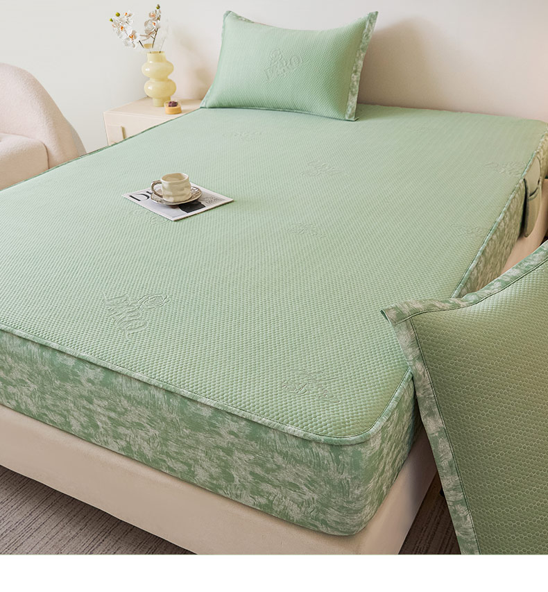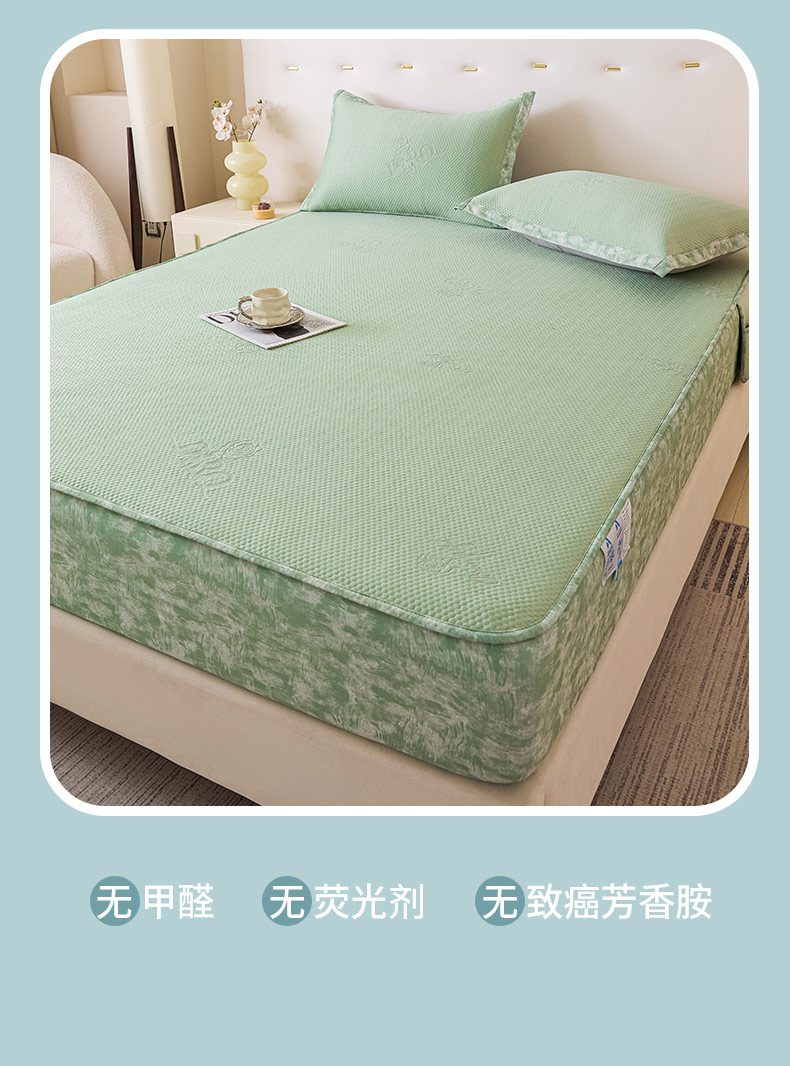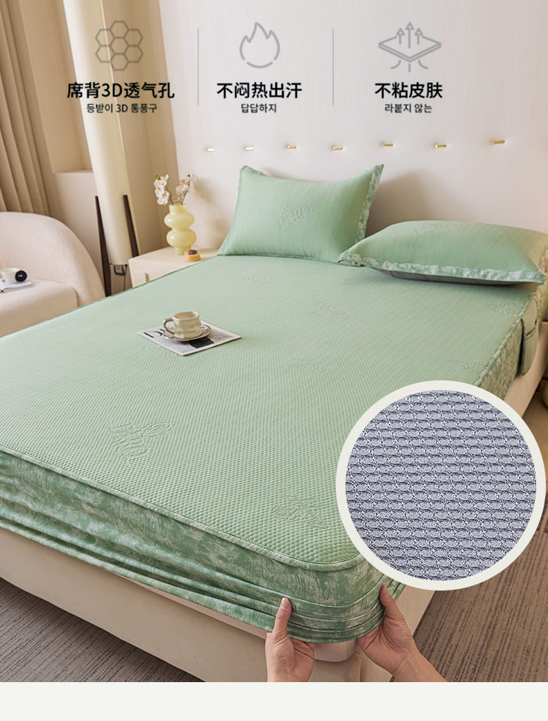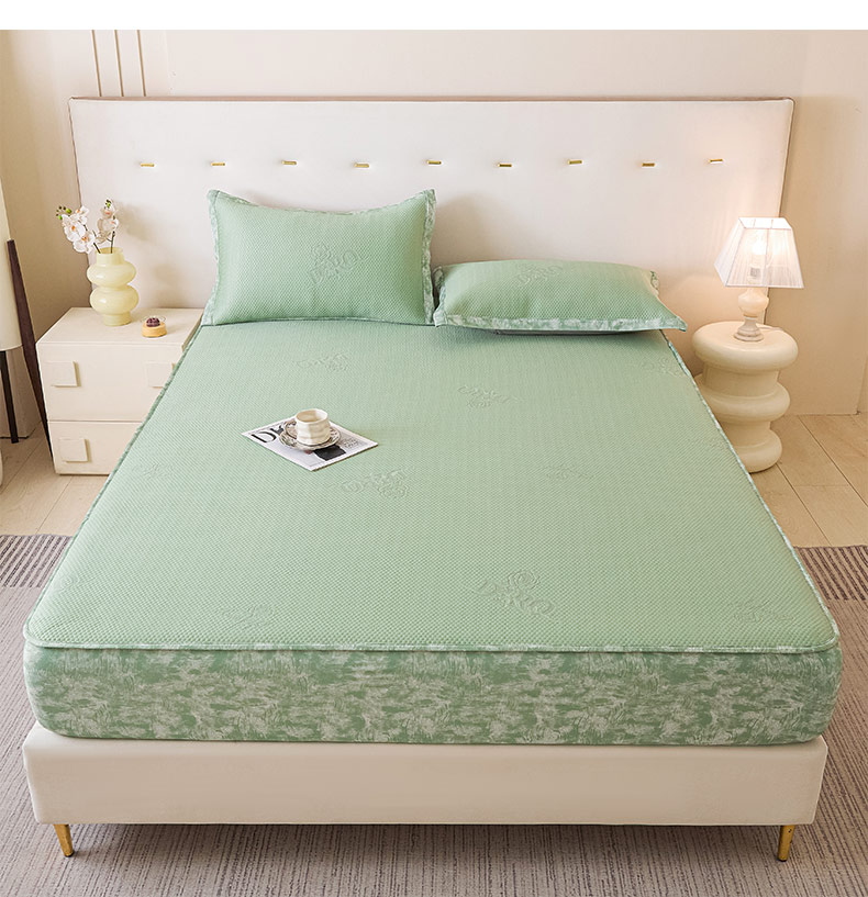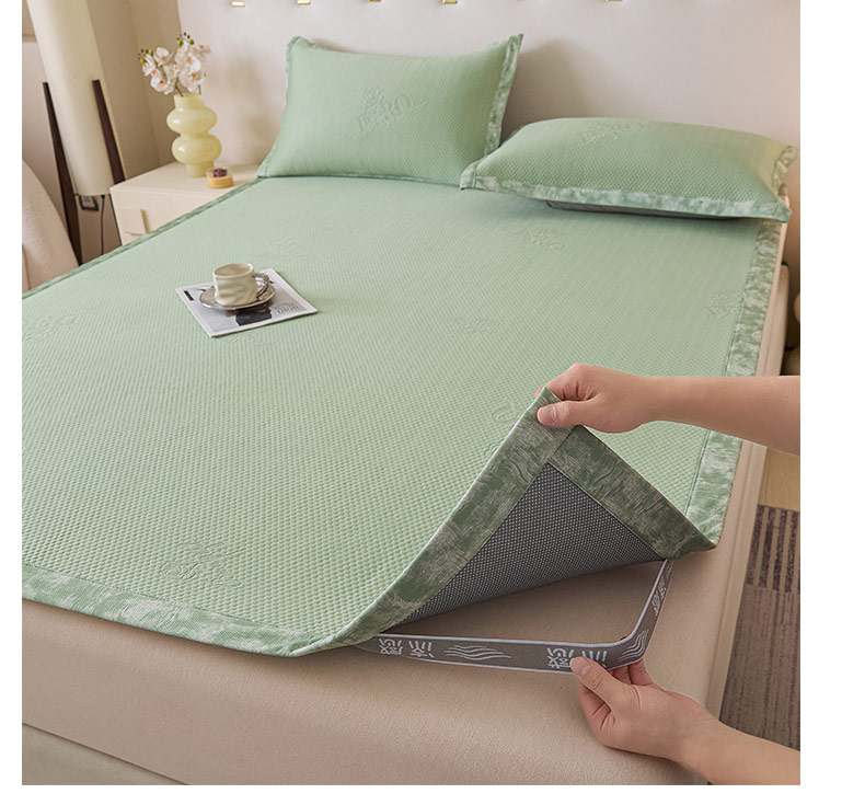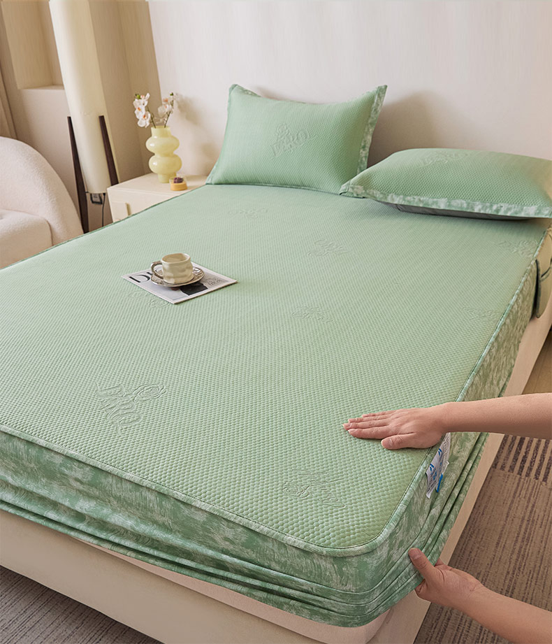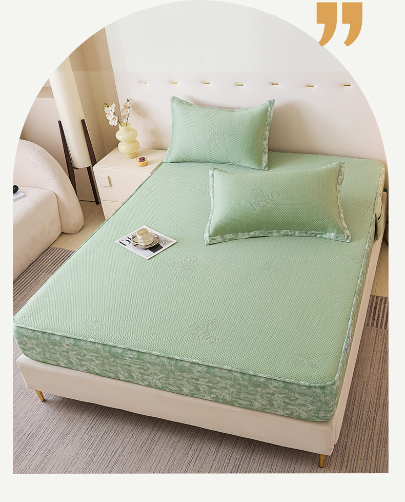 鑫琪莱 2025新款5D立体雕花凉感豆豆冰丝席凉席席子系列 床笠款-玫瑰-果绿