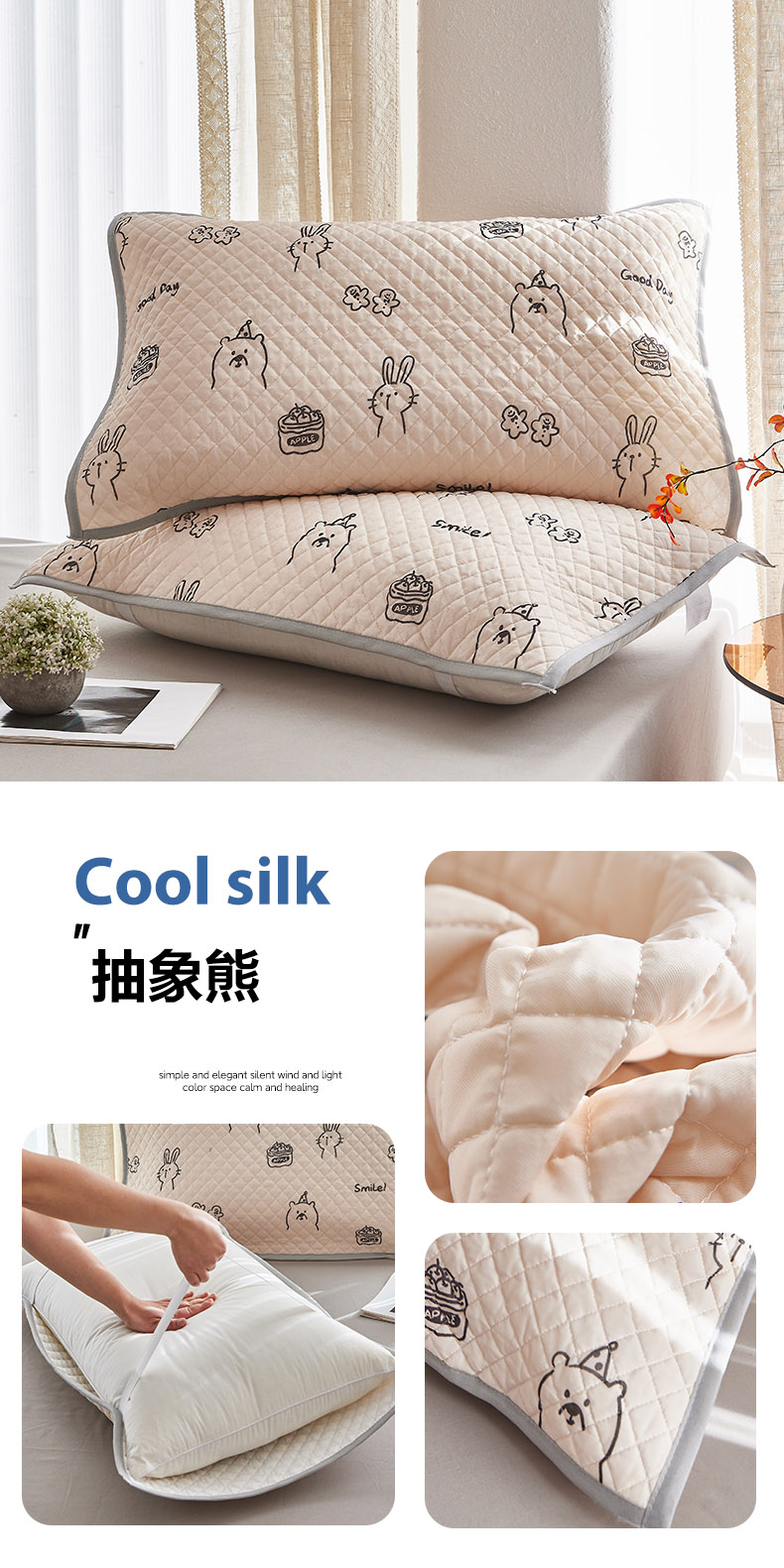爱港家纺 2025新款夏季凉感丝绗缝夹棉绑带款枕巾 枕头巾 隔汗 隔脏 抽象熊