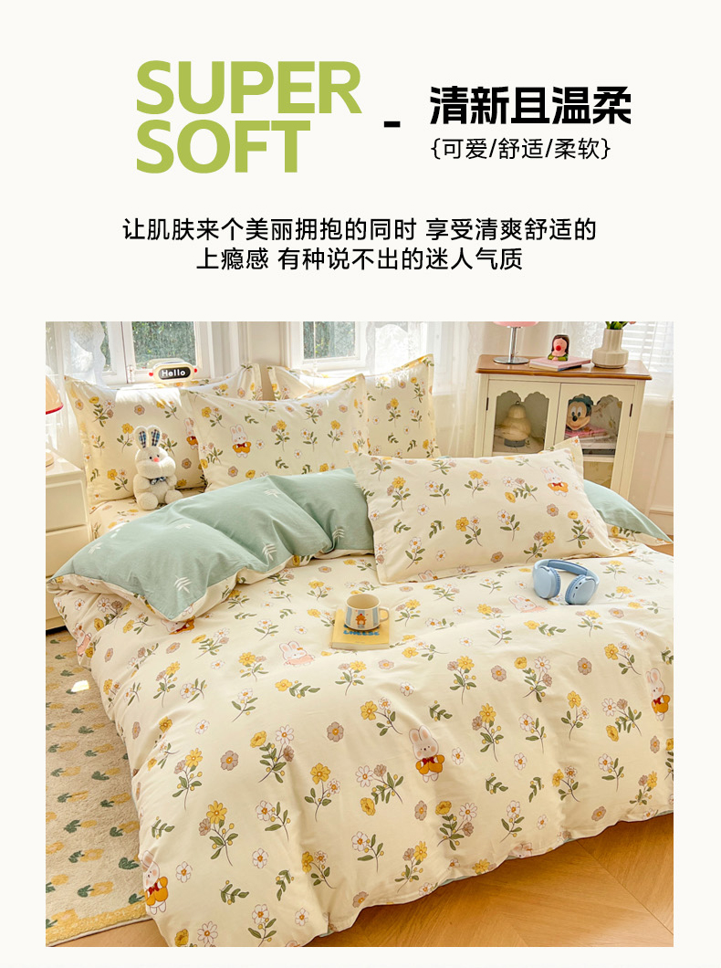 商品名称:世爵 2025新款全棉印花小清新套件系列-四件套 艾薇儿