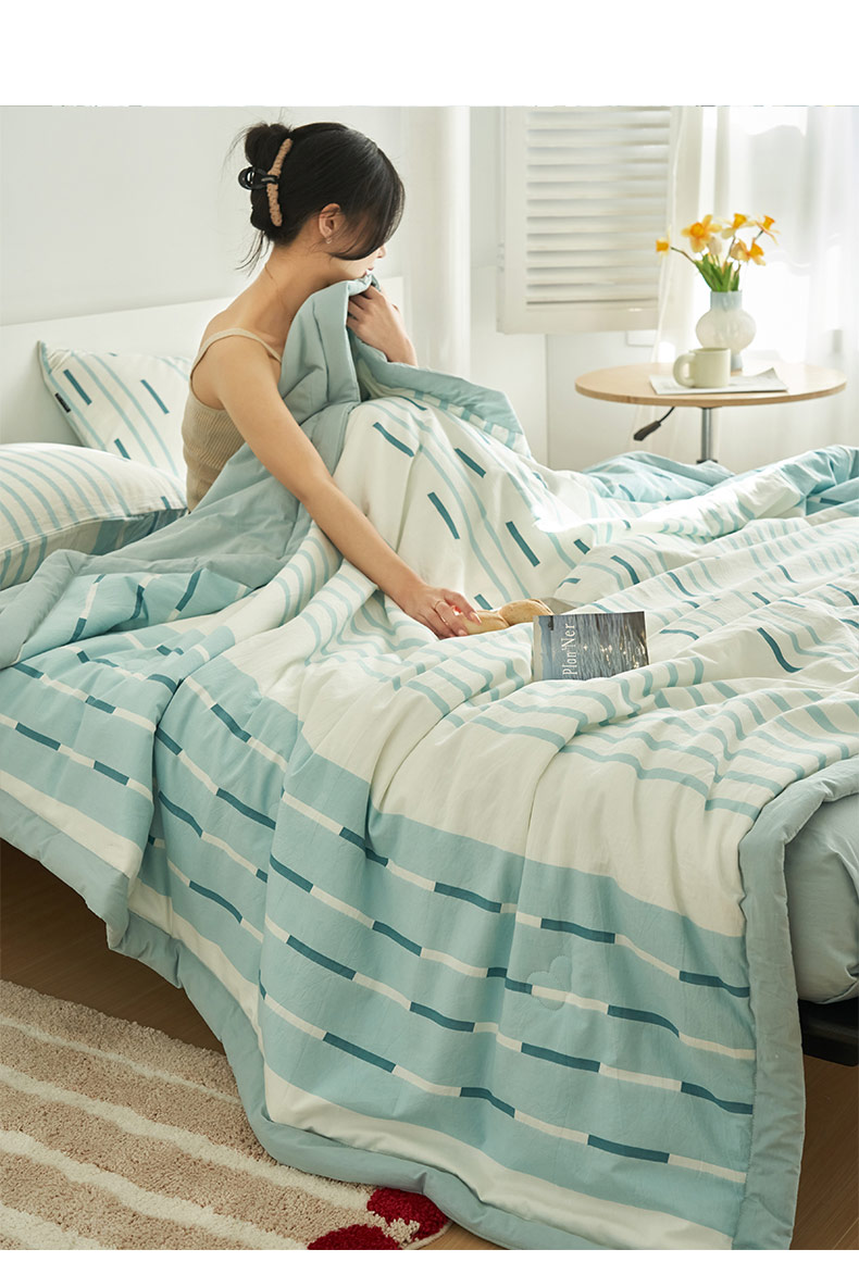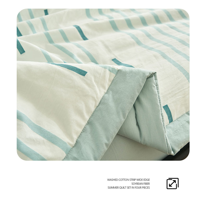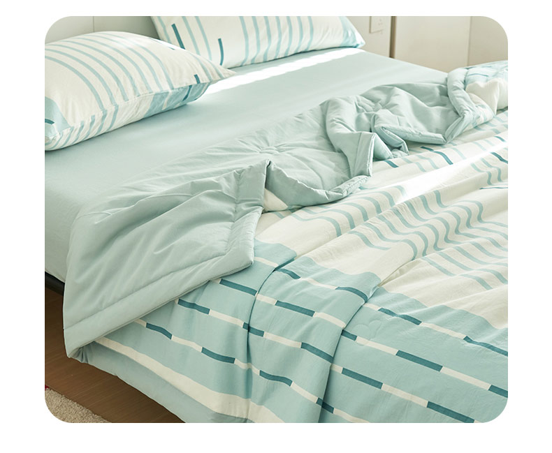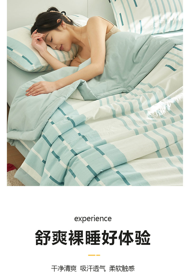 寐绸家纺 2025新款纯棉水洗棉三层简爱提花大豆纤维夏被四件套 简爱夏被-天蓝