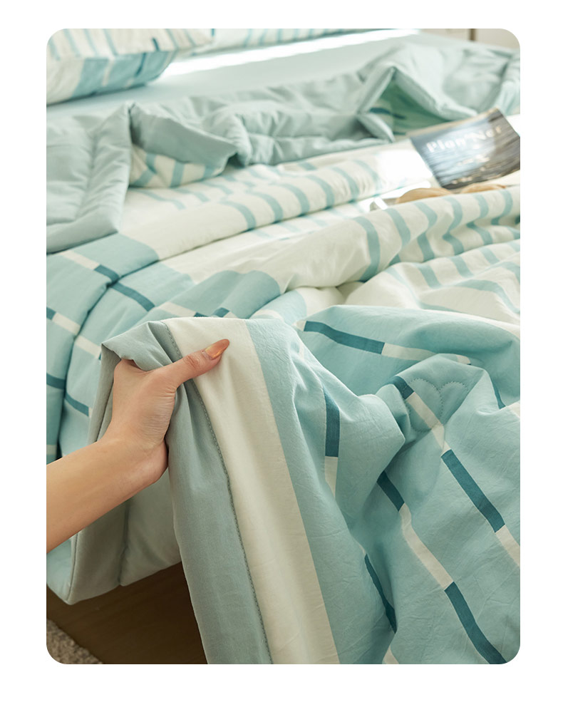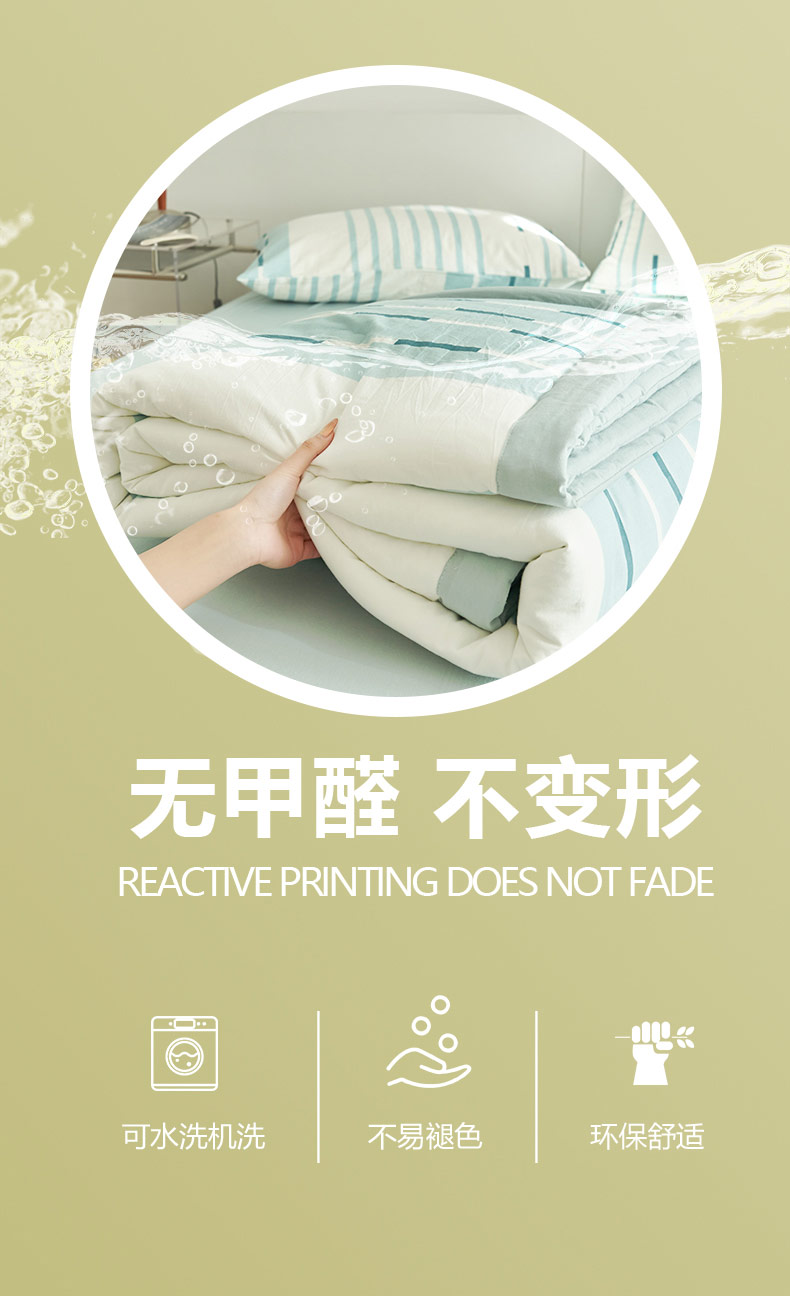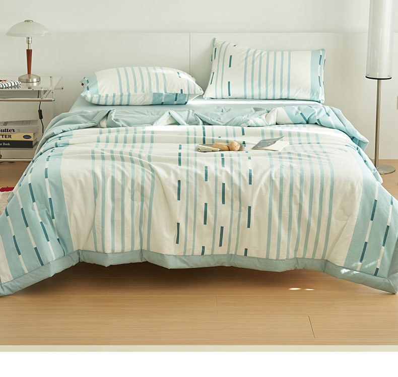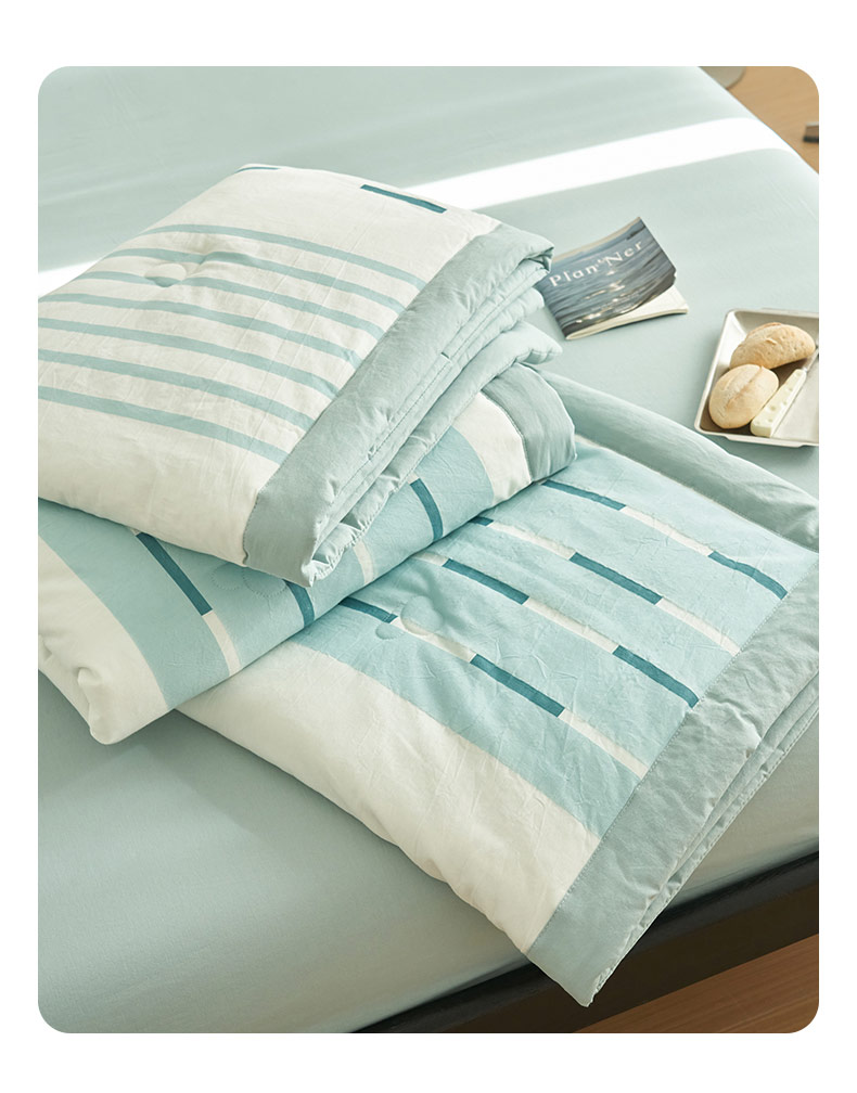 • 91家纺网 家纺一手货源 找家纺 寐绸家纺 2025新款纯棉水洗棉三层简爱提花大豆纤维夏被四件套 简爱夏被-天蓝