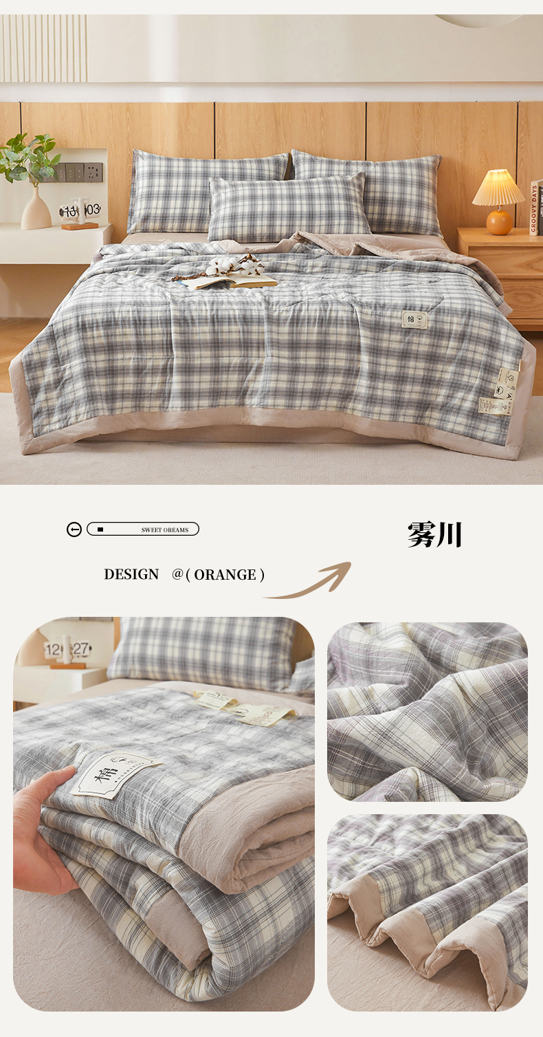(总)创优家纺 2025新款无印风格子新疆棉夏被空调被纯棉花被夏被子薄被芯水洗棉包检测