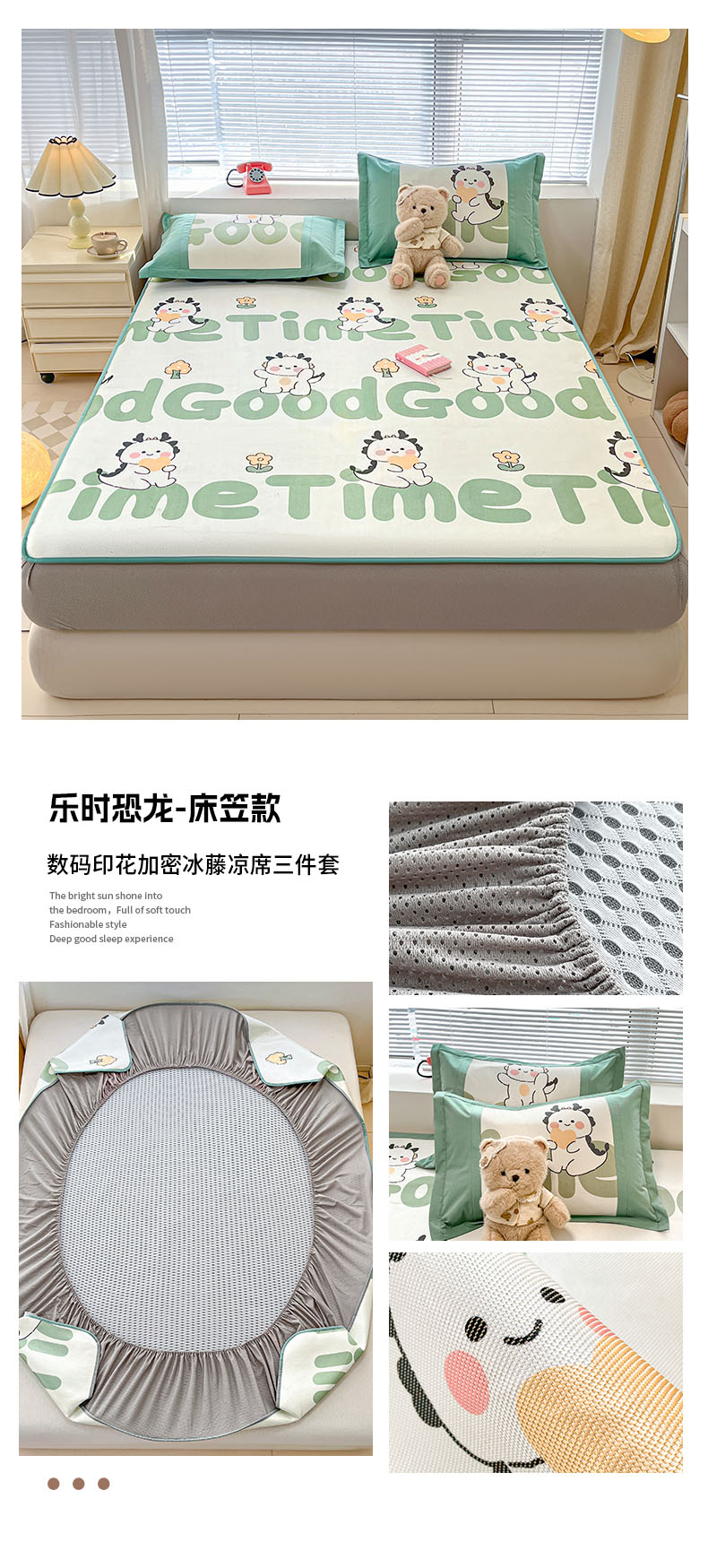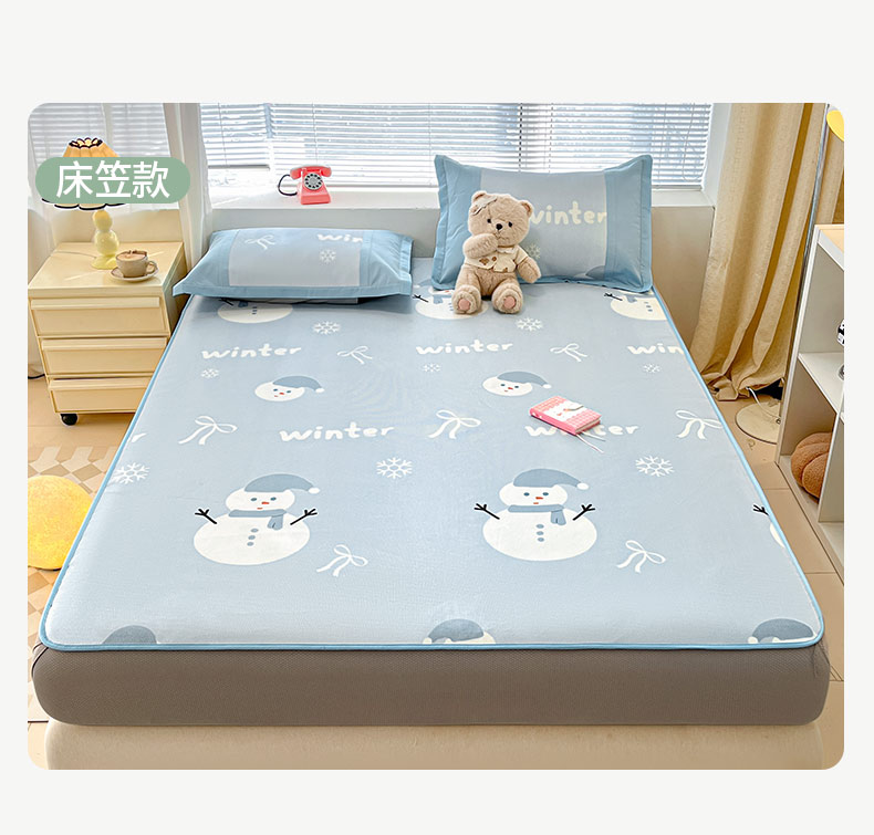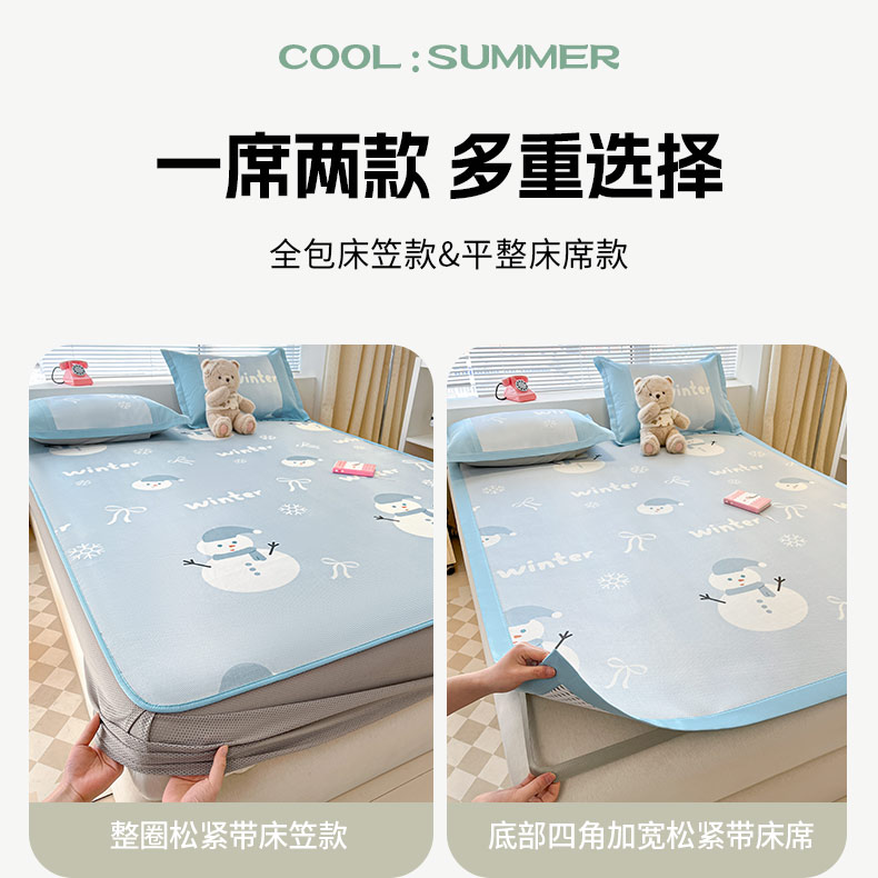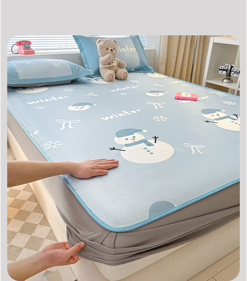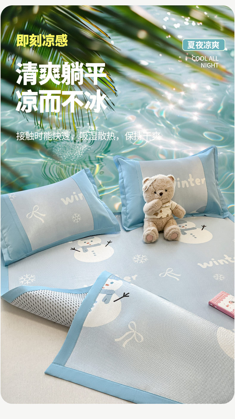 鑫琪莱家纺 2025新款数码印花加密冰藤凉席三件套 床席款-冰雪童话