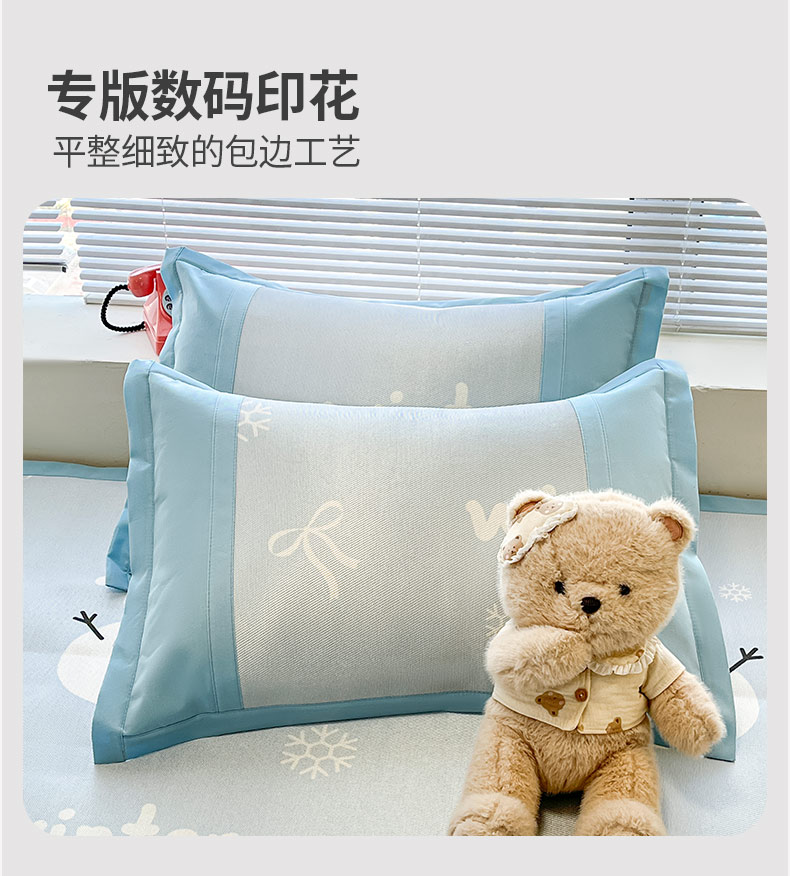 商品名称:鑫琪莱家纺 2025新款数码印花加密冰藤凉席三件套 床席款-冰雪童话