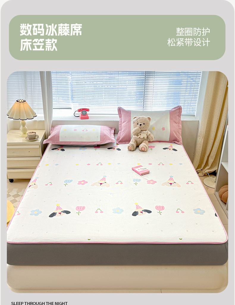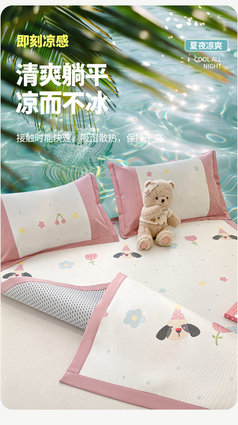 商品名称:鑫琪莱家纺 2025新款数码印花加密冰藤凉席三件套 床席款-休闲时光