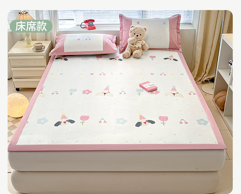 鑫琪莱家纺 2025新款数码印花加密冰藤凉席三件套 床席款-休闲时光