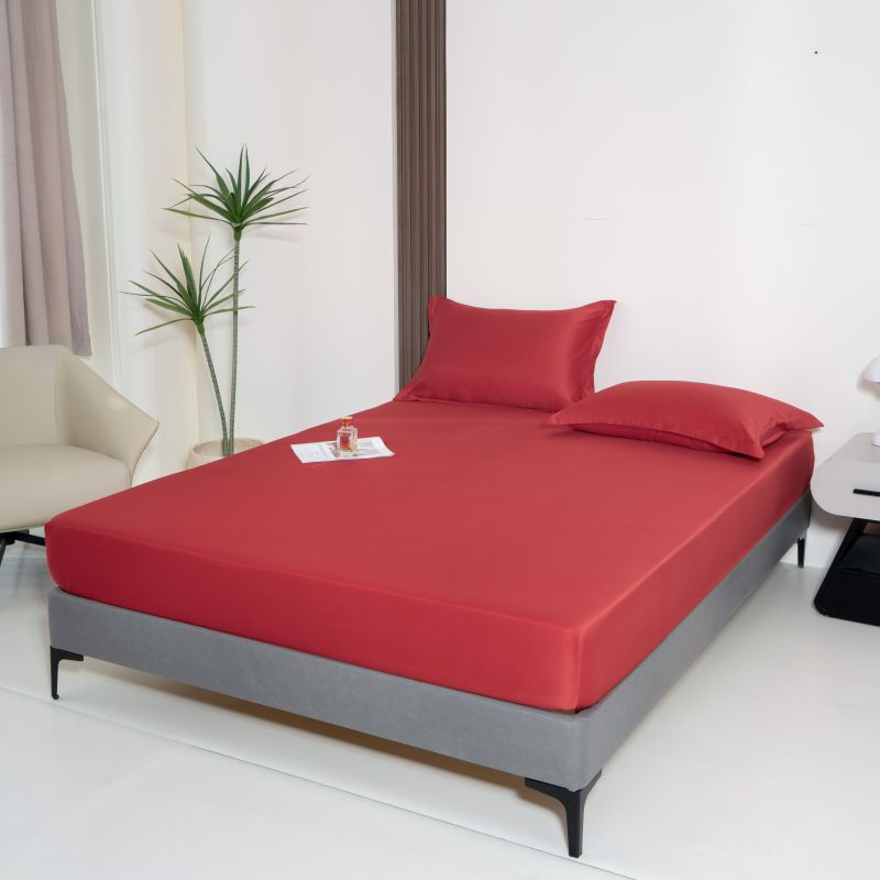 馨乐家纺 2025款水洗天丝纯色床笠 中国红