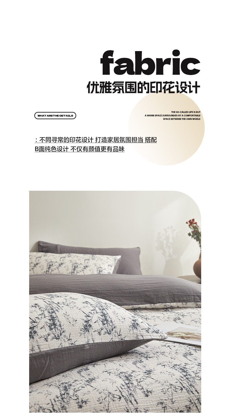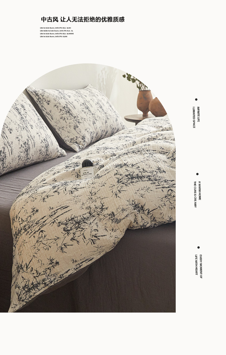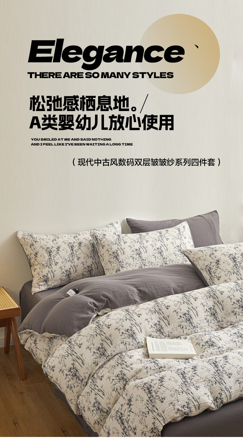 卡巴伦家纺 2025新款全棉双层皱皱纱现代中古风数码四件套 竹影