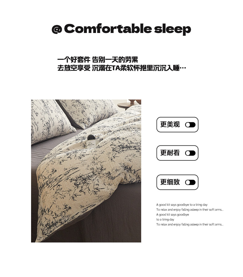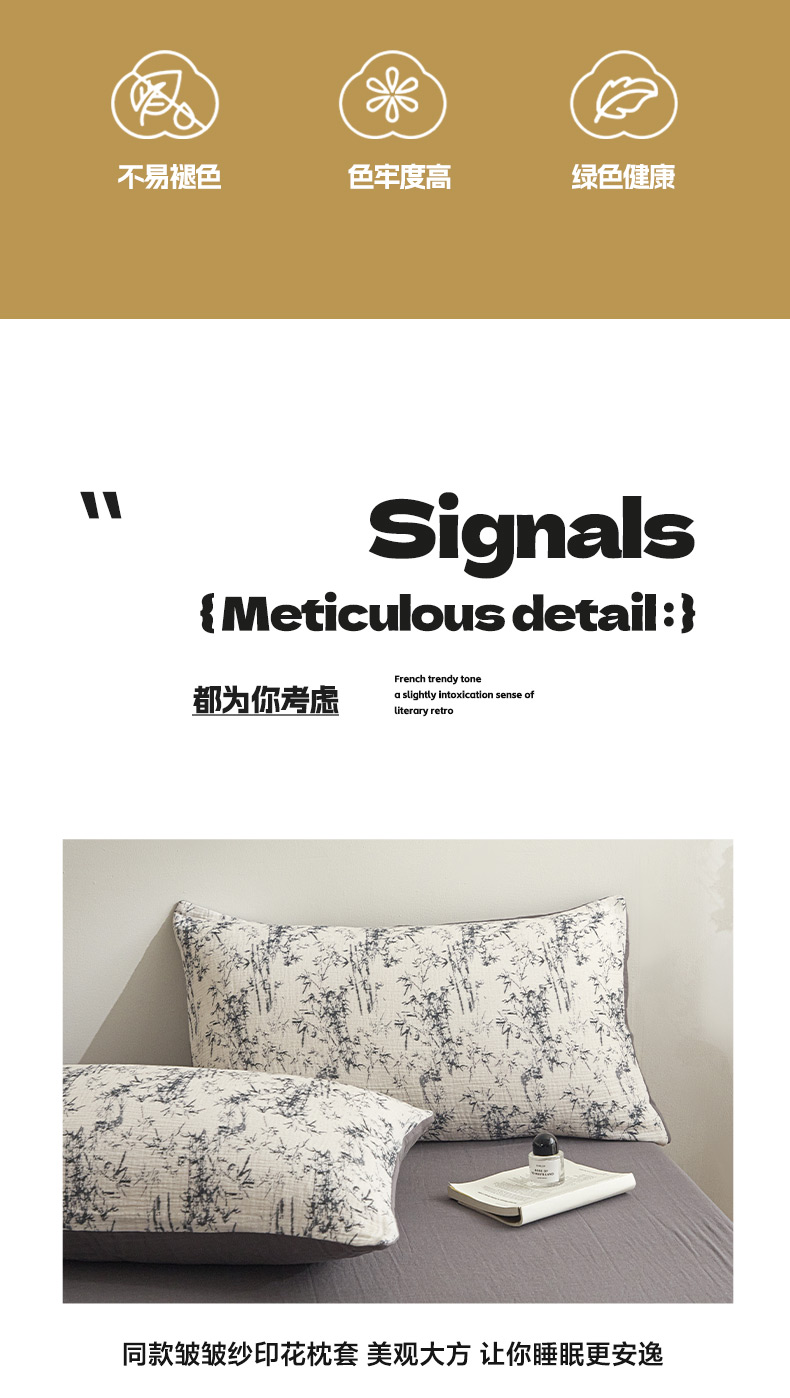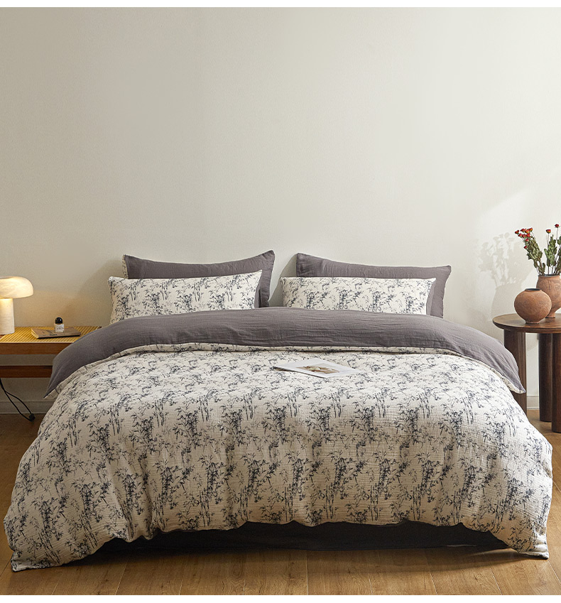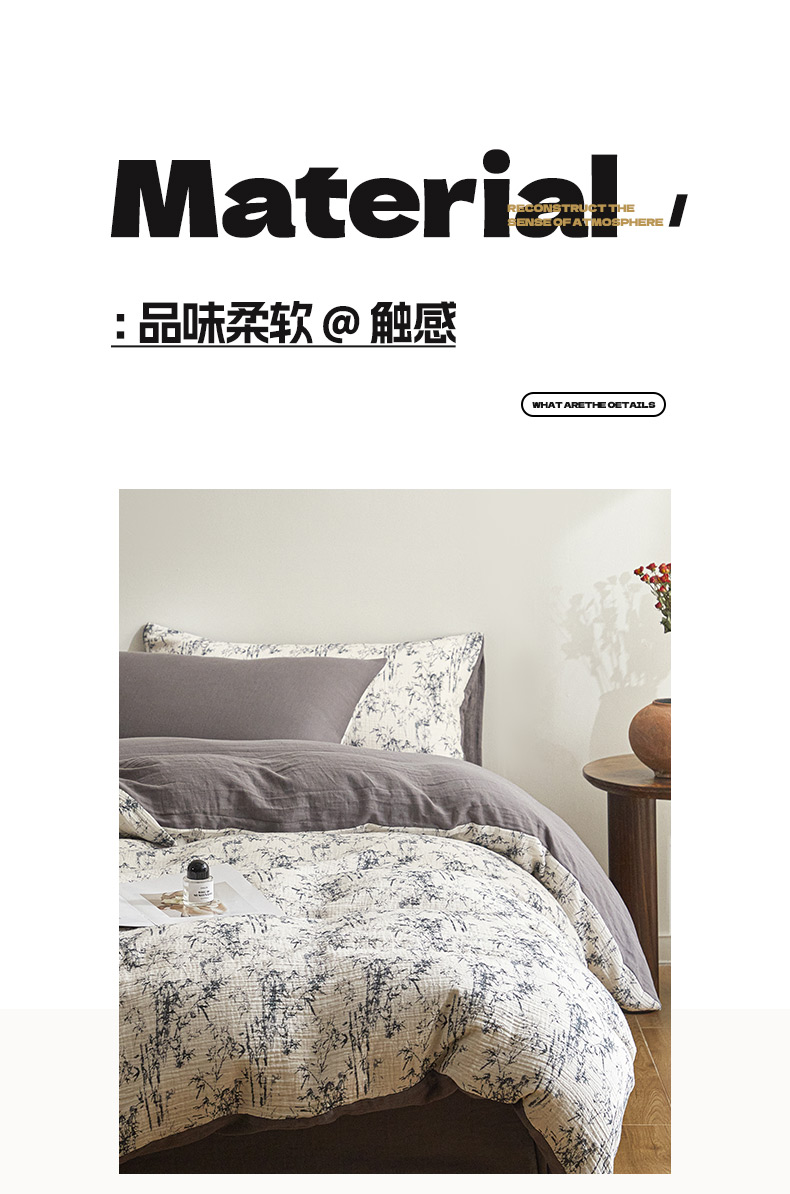 卡巴伦家纺 2025新款全棉双层皱皱纱现代中古风数码四件套 竹影