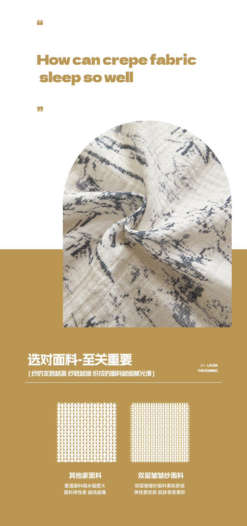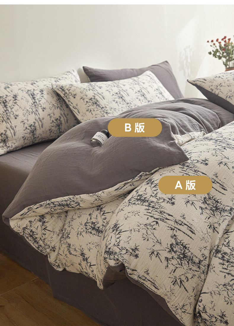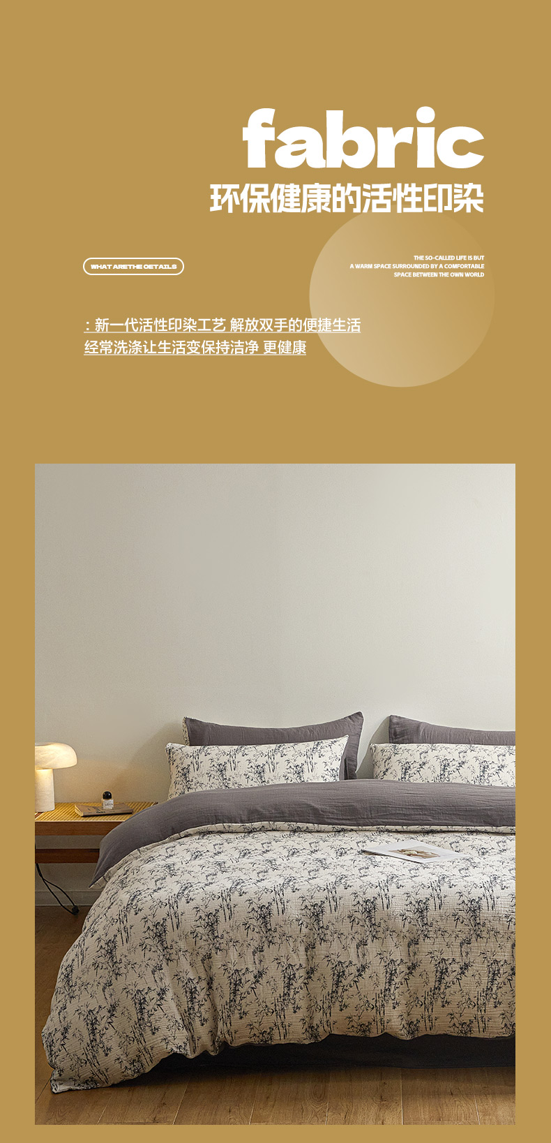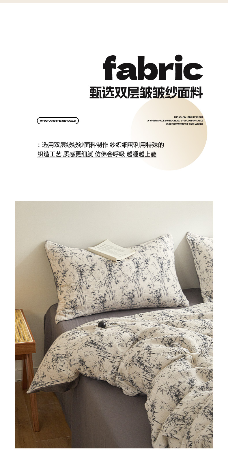 商品名称:卡巴伦家纺 2025新款全棉双层皱皱纱现代中古风数码四件套 竹影