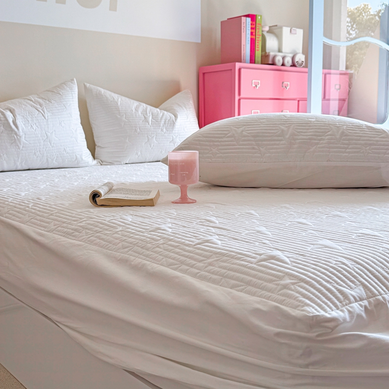 (总)漫调2025新款全棉星星床垫保护套夹棉床笠-繁星,组合图仅供参考,繁星白,繁星粉,繁星灰,繁星咖,繁星绿,繁星杏