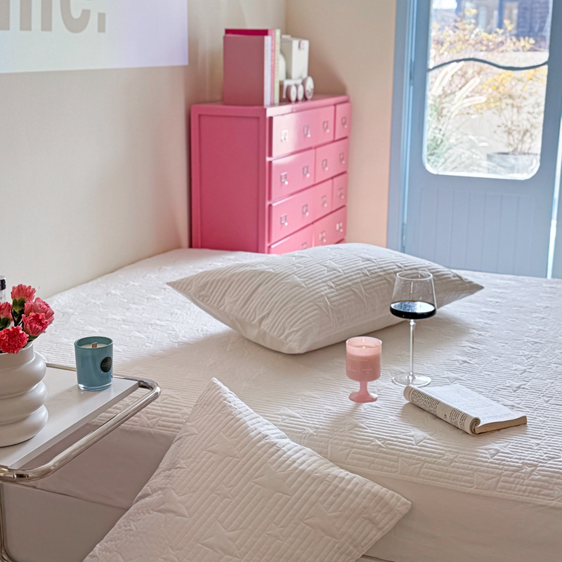 (总)漫调家纺 2025新款繁星绗缝夏被 复古风实拍,繁星白,繁星粉,繁星灰,繁星咖,繁星绿,繁星杏