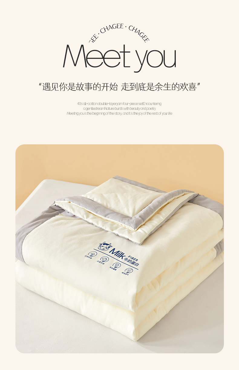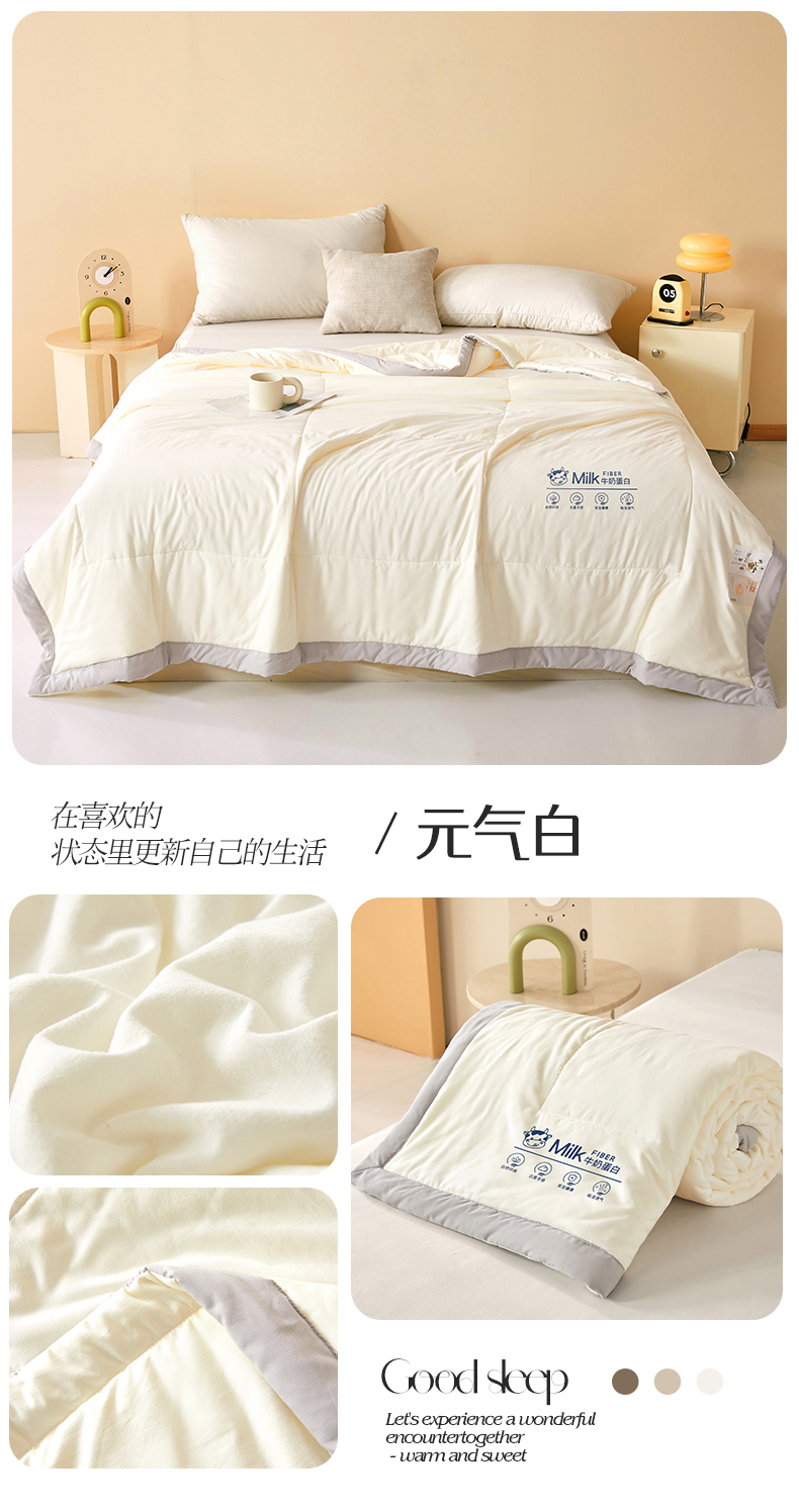猎鹿人家纺 2025新款牛奶蛋白夏被 元气白