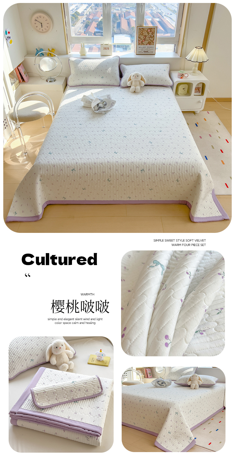 当前位置: 91家纺网 > 商品网购 > 床品套件 > 四件套 > 针织棉四件套 > 慕木家纺 2025新款A类高克重四季款针织棉双层纱多功能床盖可铺可盖 樱桃啵啵