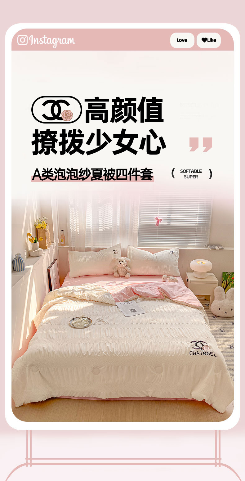 (总)灰鲸 2025新款泡泡纱艾丽莎刺绣夏被四件套系列