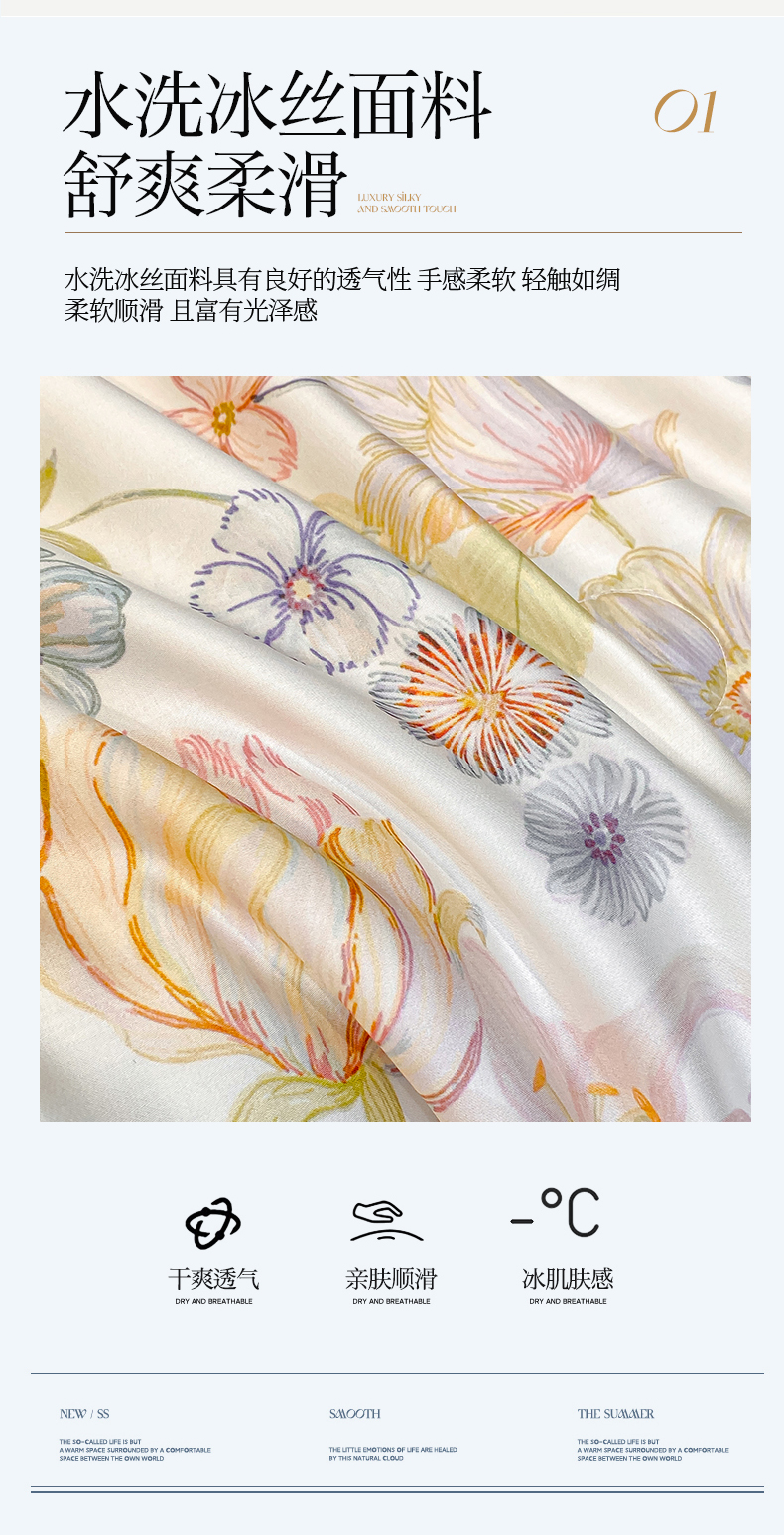 商品名称:(总)笙意家纺 2026A类水洗冰丝数码印花宽边夏被四件套