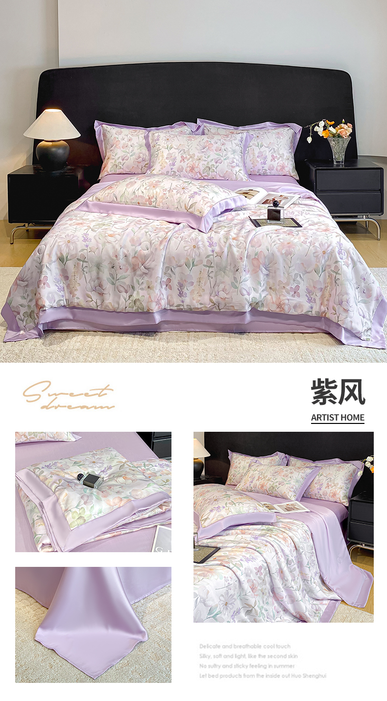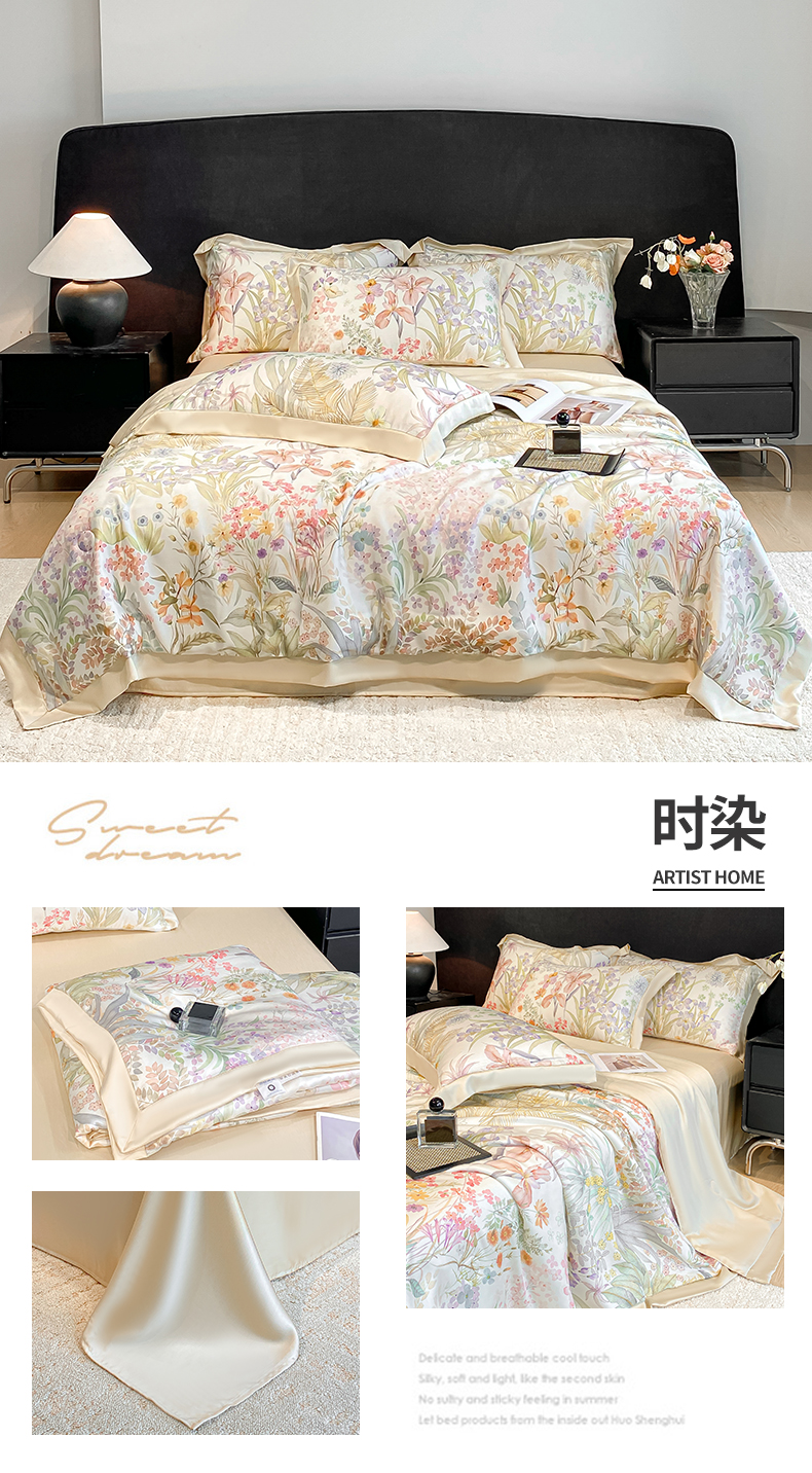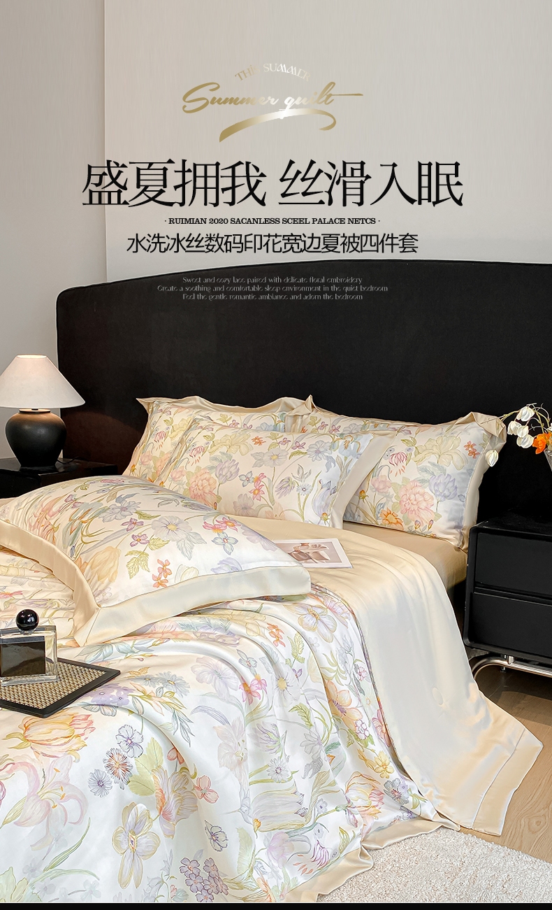 (总)笙意家纺 2026A类水洗冰丝数码印花宽边夏被四件套