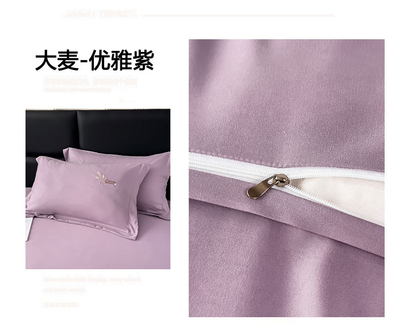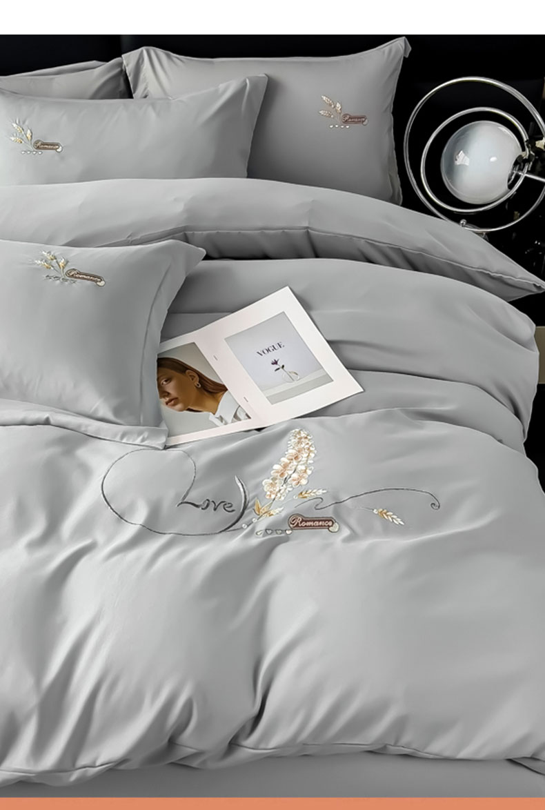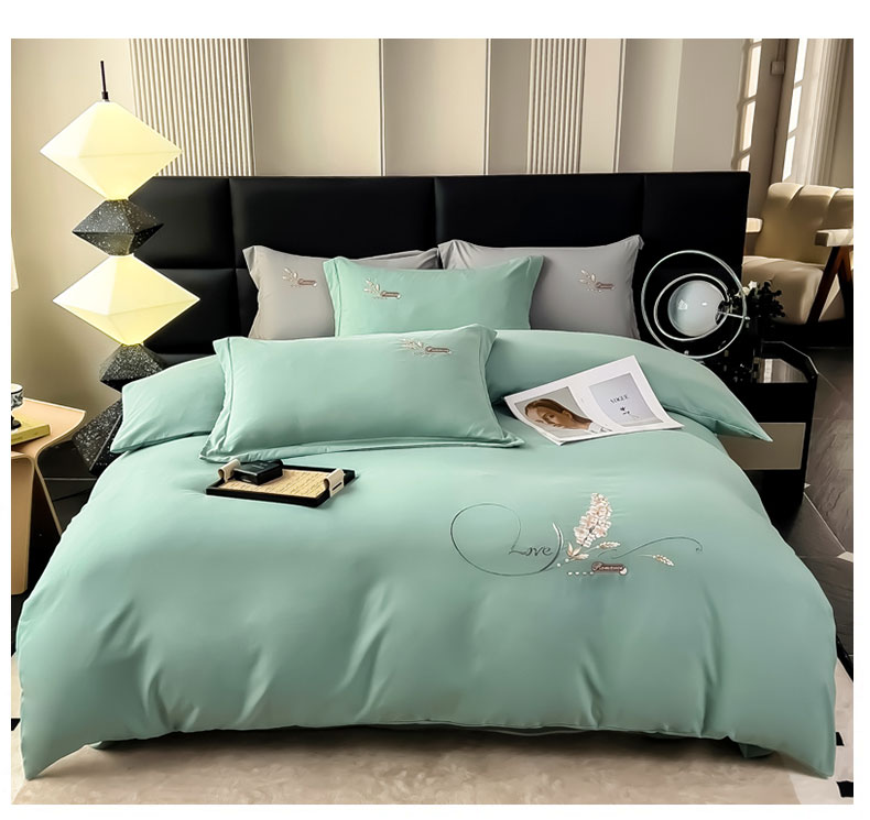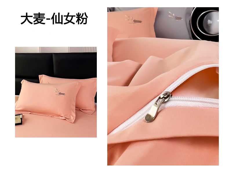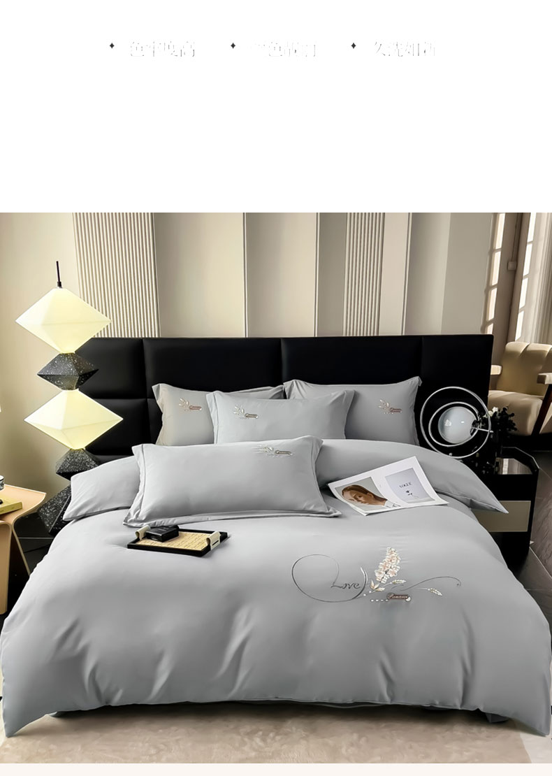 (总)曲之慕 2025新品四季款高端刺绣四件套简约可水洗轻奢纯色刺绣四件套--大麦